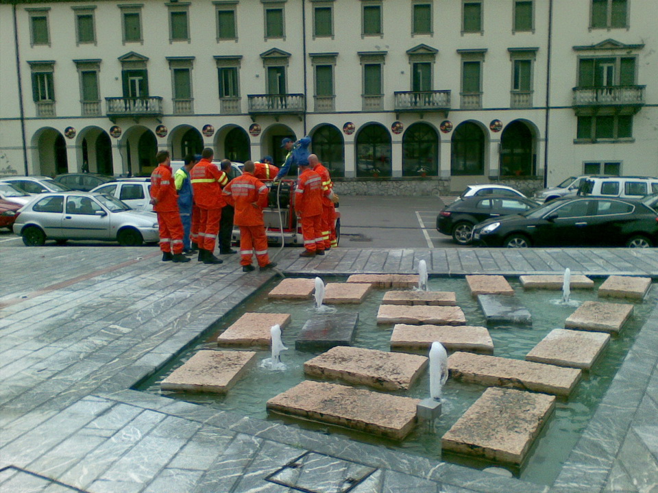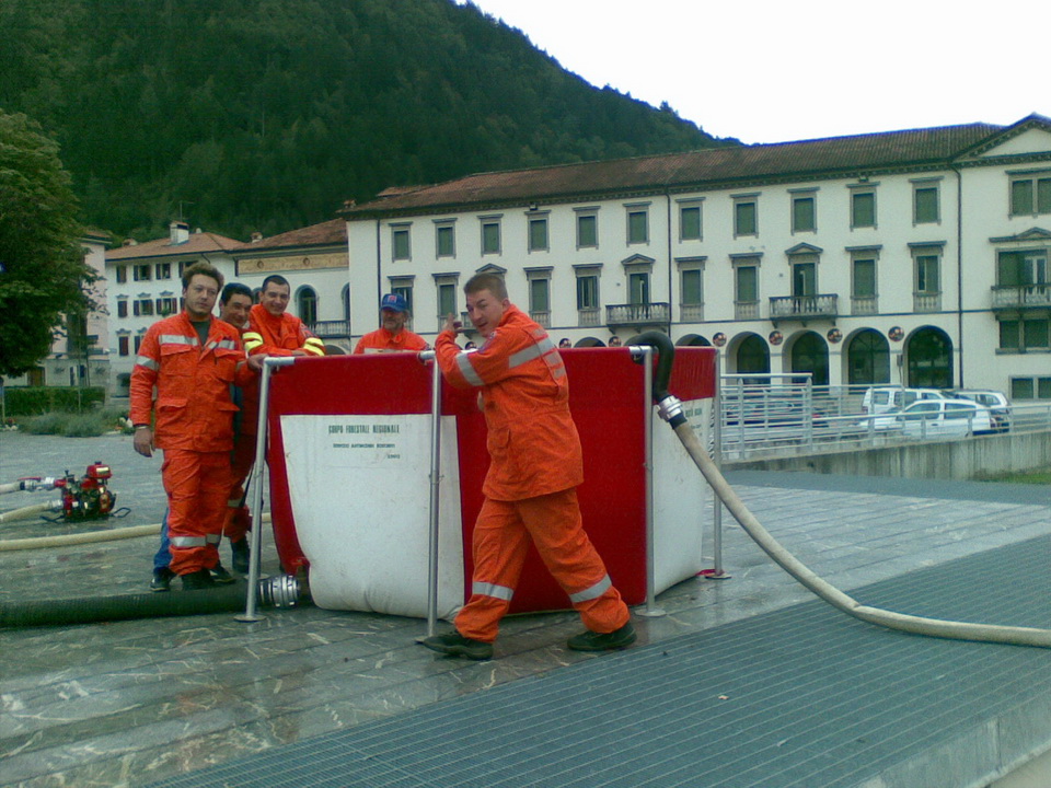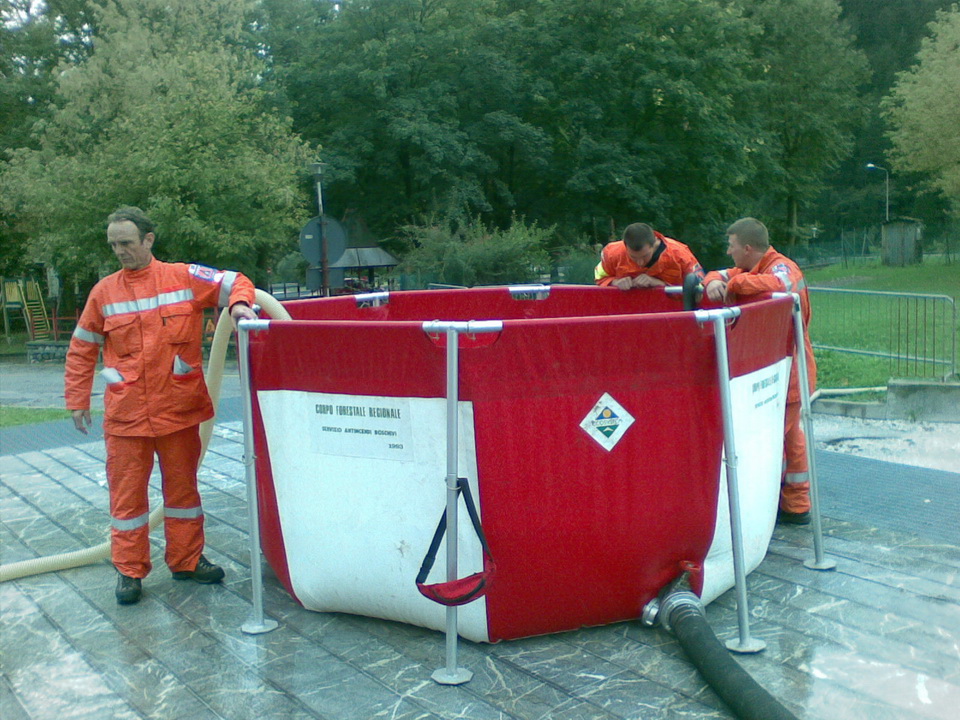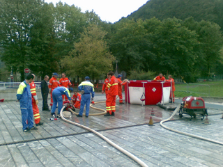 - prova pratica con il montaggio nel piazzale del vascone di 6000 litri dove pescavano le 2 motopompe con 2 linee da manichette di 70 che alimentavano le linee da 45 con le lance. Il modulo AIB, invece, è stato utilizzato sia con rifornimento effettuato tramite idrante sia utilizzando il pescante in dotazione.
