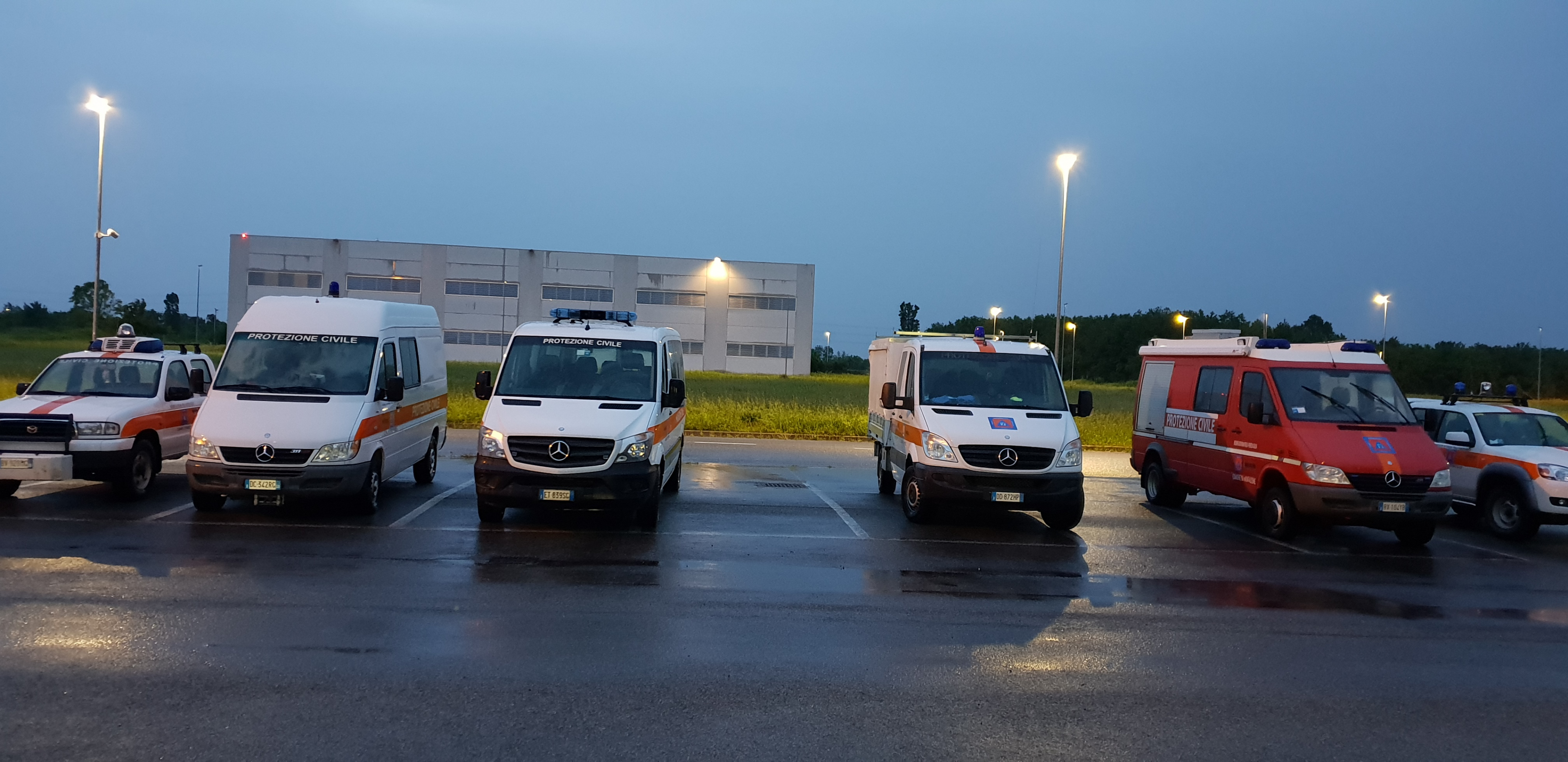 La  partenza alle ore 5:30 verso Modena della colonna costituita da 6 mezzi, è stata preceduta dal camion preposto per la logistica e condotto da un funzionario regionale per il trasporto del materiale necessario all'attività in loco.