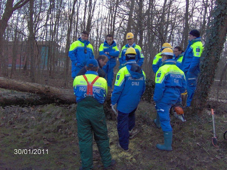 Domenica 30 gennaio 2011 il Gruppo comunale di Protezione civile di Rivignano è stato impegnato in un'attività addestrativa  riguardante le tecniche di abbattimento degli alberi mediante l'uso della motosega e le modalità di recupero e sezionatura degli stessi. L'istruttore della giornata era un noto boscaiolo nonché istruttore al centro formazione “CESFAM” di Paluzza, che i volontari di Rivignano hanno ospitato per l'occasione; l'istruttore ha saputo ben relazionare una lezione teorico-pratica applicata sul campo. L'interesse dei volontari era focalizzato principalmente nelle procedure di recupero di un albero caduto nel fiume con l'uso del verricello e del Tirfor e le varie tecniche di sezionatura dei tronchi in situazioni di intervento disagiate, condizioni frequenti in questo contesto di territorio. Volontari e istruttore si sono dati appuntamento per un'altra lezione più approfondita con un'intervento di recupero congiunto sia da terra che dall'acqua con l'ausilio delle imbarcazioni.