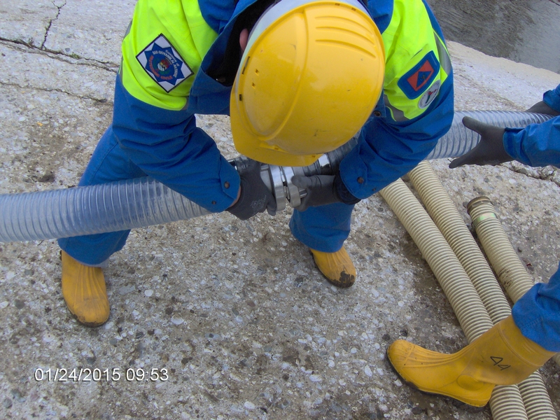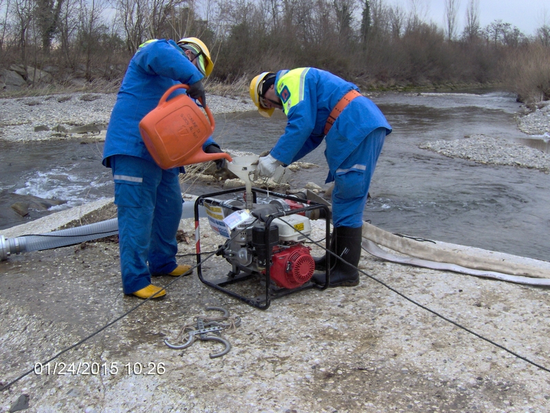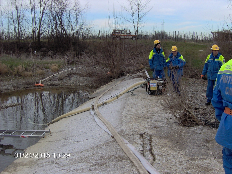 L’addestramento si è svolto con: briefing iniziale, controllo delle attrezzature, partenza e arrivo sul punto di intervento, messa in sicurezza dell’ area del cantiere, preparazione dei materiali, posa ed allestimento motopompe, messa in funzione e prova delle nuove attrezzature (pompe elettriche).