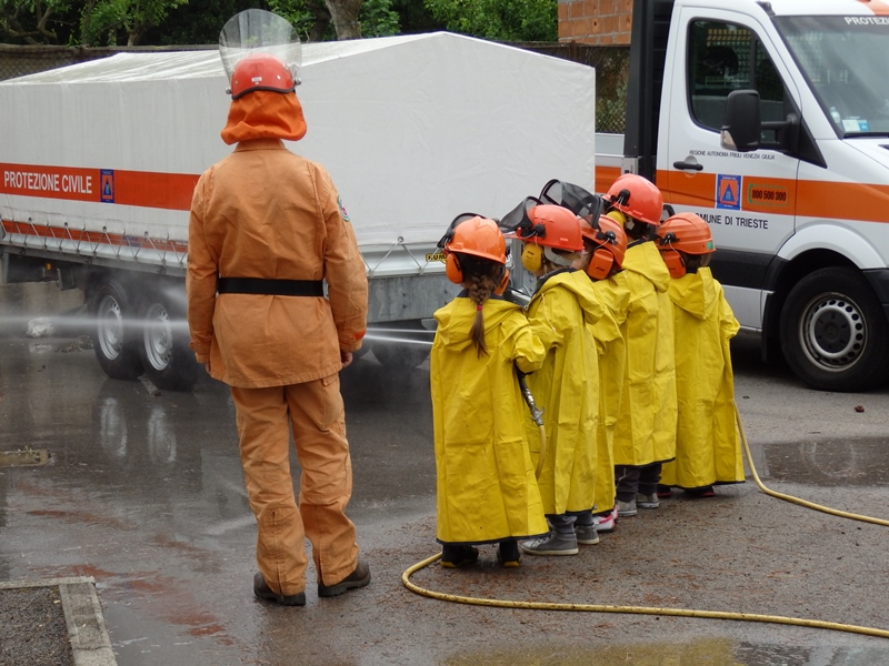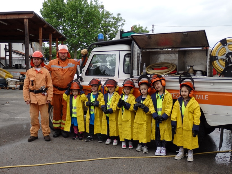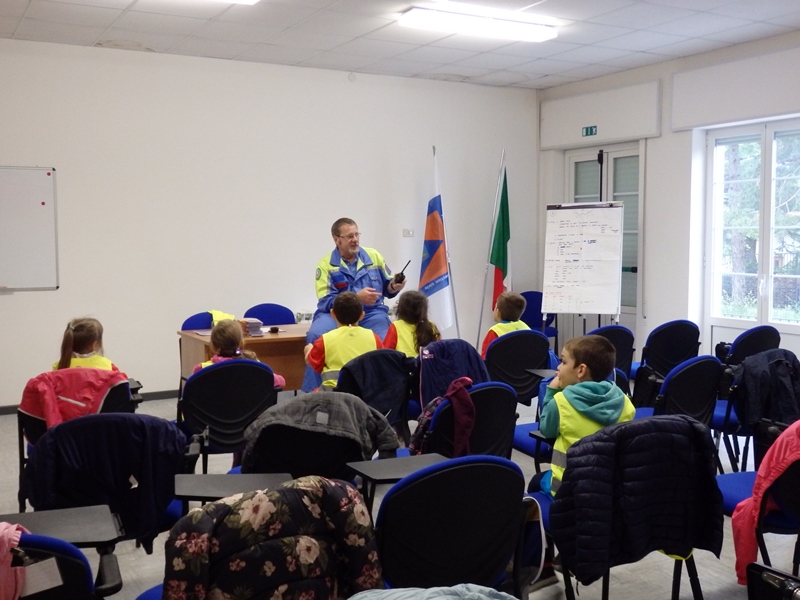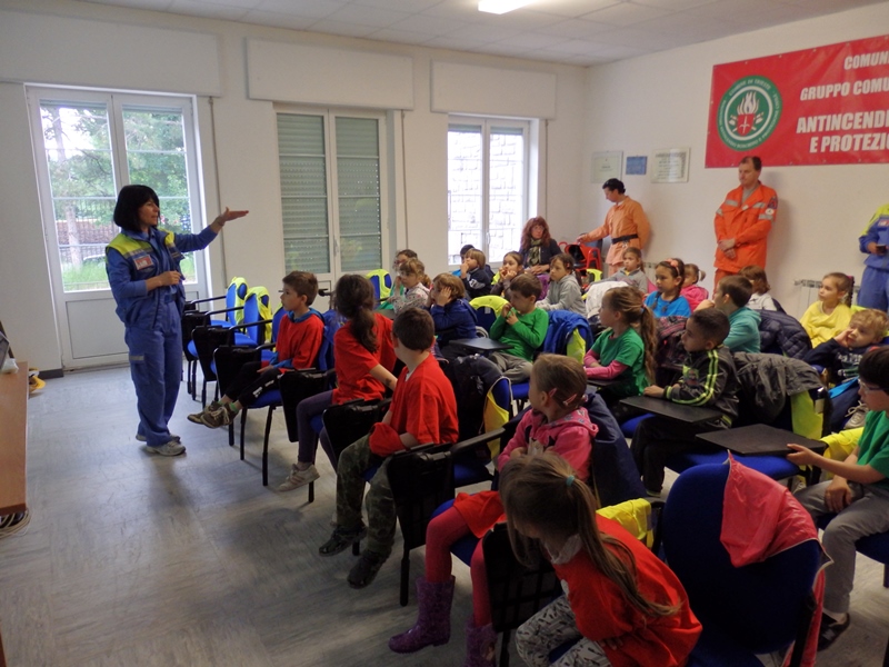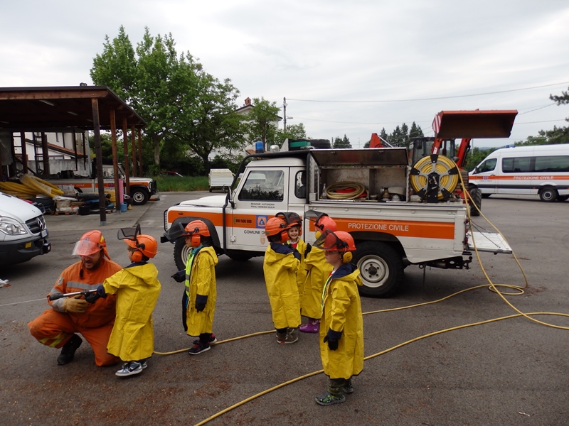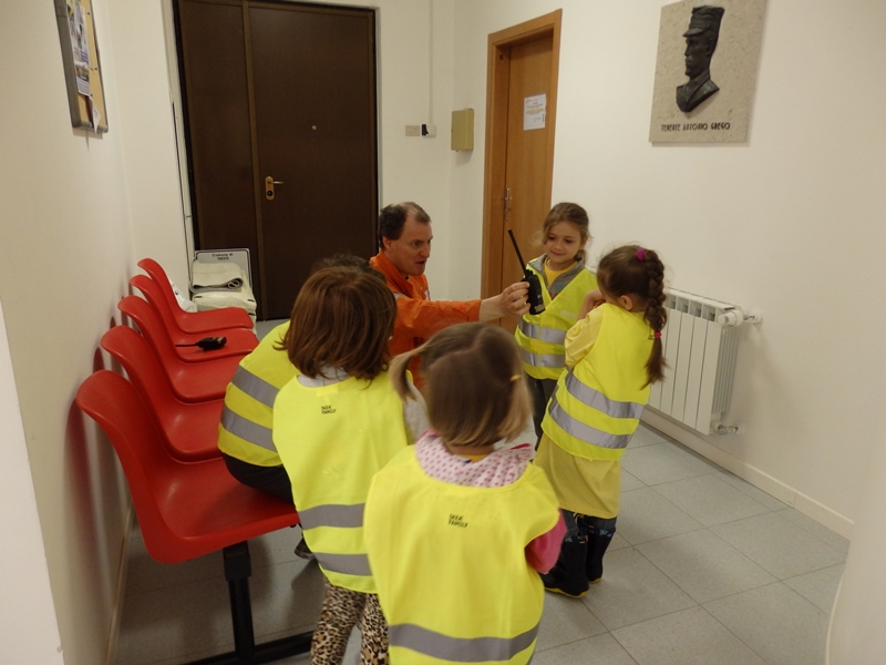 L'evento si è svolto presso la sede di Santa Croce ed ha coinvolto i bambini frequentanti l'ultimo anno di tutte le sezioni della scuola materna. Causa il tempo instabile, le attività si sono perlopiù susseguite all'interno della struttura: i bambini suddivisi in squadre hanno assistito, in maniera alternata, ad una lezione teorico/pratica con la volontaria cinofila poi ad una spiegazione sull'uso delle radio interagendo, di seguito, con brevi e simpatiche comunicazioni all'interno del proprio gruppetto; è stata data la possibilità di visionare ed accedere ai mezzi in dotazione al Gruppo nonchè di cimentarsi con l'uso delle lance antincendio.