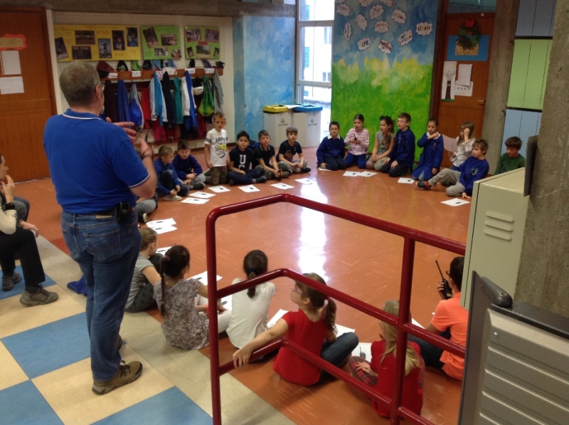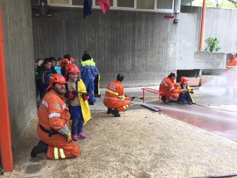 Per attuare questo progetto, i bambini delle prime e seconde classi hanno assistito prima ad una lezione di attività cinofila (integrata con semplici tecniche di approccio a cani "non conosciuti"), successivamente ad una breve lezione sull'attività di Antincendio Boschivo con prove pratiche individuali di spegnimento con manichette. I bambini delle terze e quarte classi si sono alternati a seguire prima una lezione teorica e pratica di corso radio e poi una lezione su "Terremoto e Alluvione" supportata da slide; in entrambe gli interventi, i bambini sono stati stimolati ad intervenire con domande, curiosita', ecc...