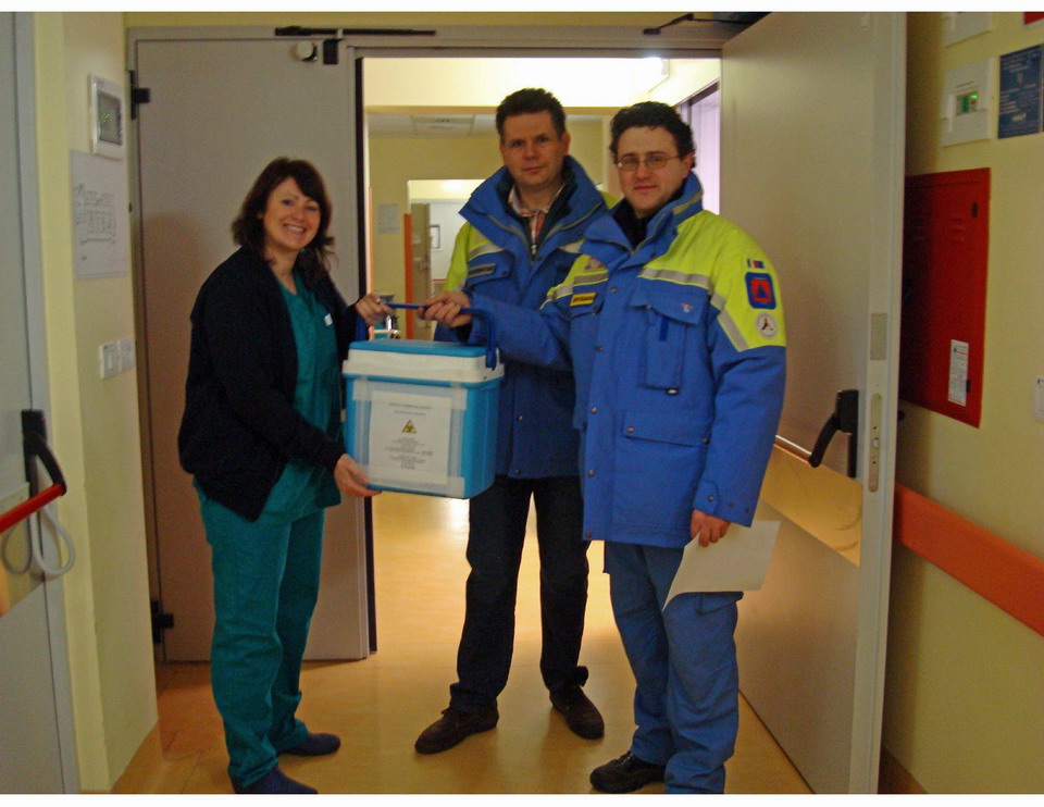 Il vice coordinatore Marco Pecchi ha prelevato il campione con il sangue cordonale presso l'Istituto Burlo Garofolo di Trieste alle ore 7.15, consegnando il contenitore, come da programma, presso il Centro Operativo della Protezione civile regionale di Palmanova.