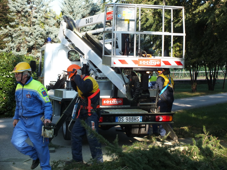 Nella mattina di sabato 17 novembre 2012 una squadra, composta dal coordinatore e da 4 volontari, del gruppo comunale di Arzene è intervenuta in località Comina al confine tra i comuni di Pordenone e di San Quirino per il taglio sommitale di alcuni alberi. Data l’altezza degli alberi l’operazione ha richiesto l’utilizzo di un mezzo dotato di piattaforma elevabile in dotazione al Gruppo. Le operazioni di taglio si sono concluse in un paio d’ore.