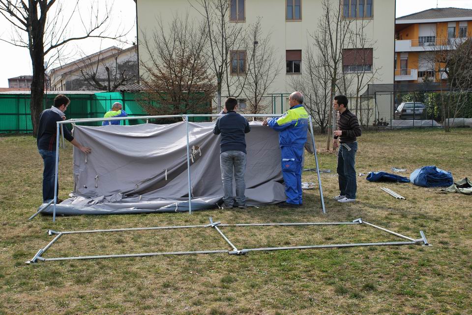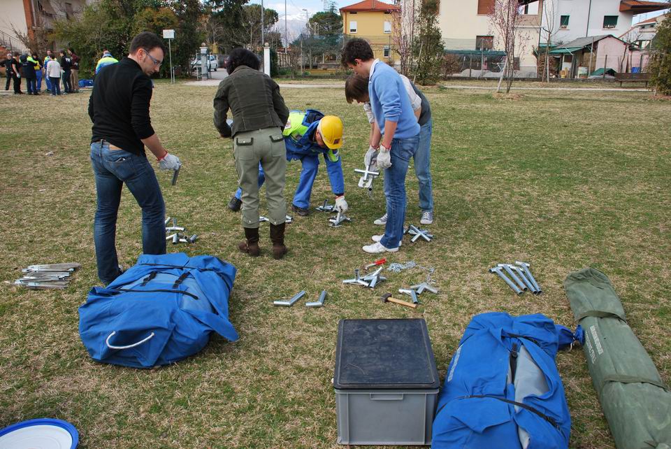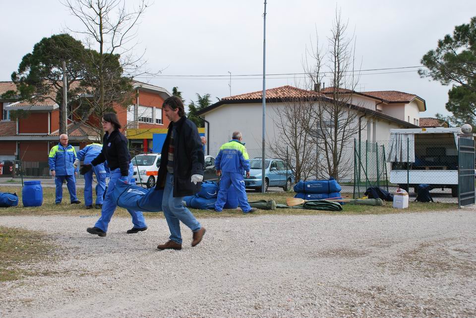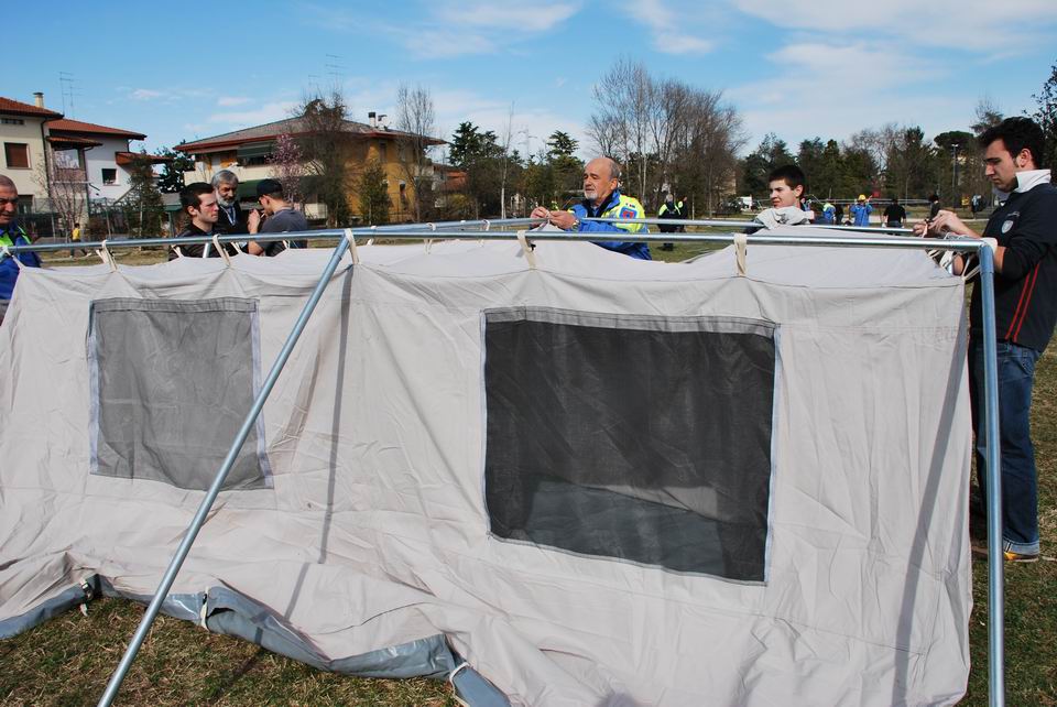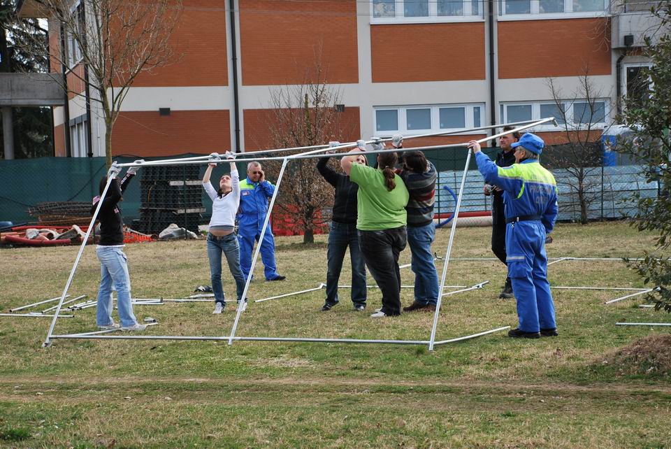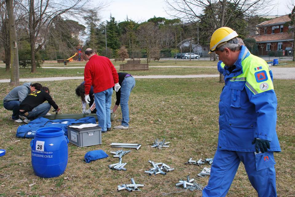 Dopo la lezione teorica, martedì 24 marzo 2009, gli studenti hanno eseguito una prova pratica di montaggio/smontaggio tende, supportati dai volontari di Protezione civile di Pordenone e hanno appreso l’importanza di una risposta tempestiva ed efficiente in caso di reale evento emergenziale.