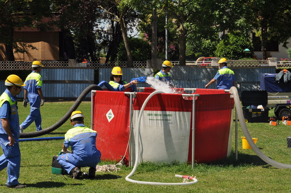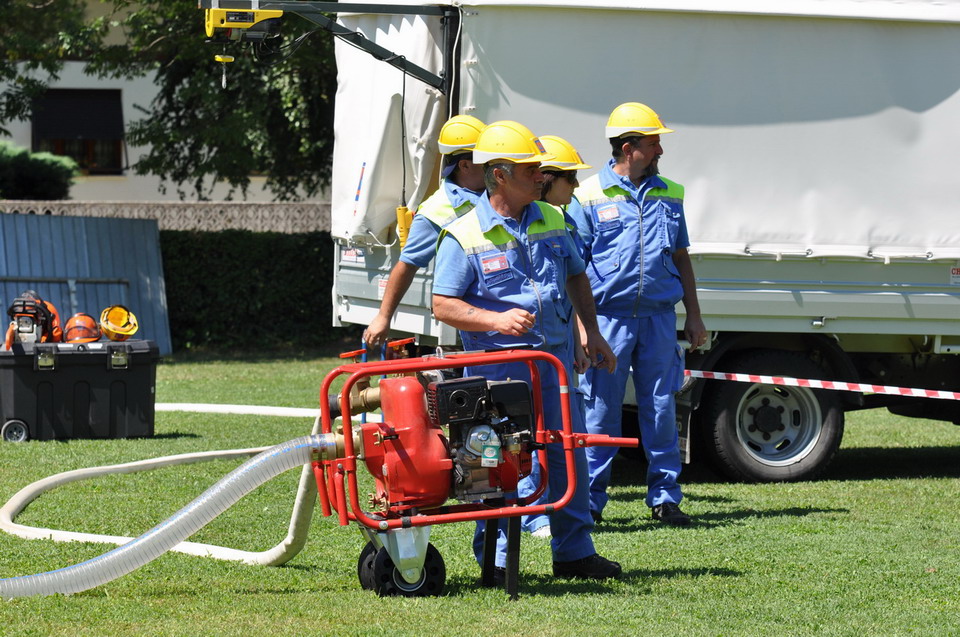 Ha fatto seguito una spiegazione sull’utilizzo delle singole attrezzature a disposizione del Gruppo mediante l'effettuazione di una breve prova dimostrativa del loro utilizzo da parte dei volontari. La popolazione intervenuta ha così potuto constatare dal vivo l’operatività di generatori, pompe per esaurimento, motoseghe, verricello dell’autocarro in dotazione, l’uso del tirfor ecc. e di conseguenza anche la professionalità raggiunta dai volontari attraverso il superamento dei corsi teorici e pratici organizzati dalla Protezione Civile della Regione e le numerose sessioni di addestramento fatte in loco. L’attività è stata conclusa con la presentazione dei due volontari del Gruppo facenti anche parte del Gruppo regionale cinofilo del Corpo forestale.