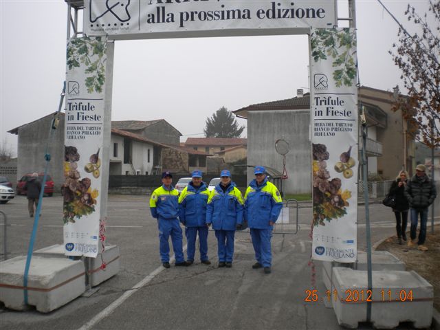 Nelle giornate del 24 e 25 novembre 2012 il Gruppo comunale di Protezione civile di Muzzana del Turgnano ha fornito supporto delle forze istituzionali preposte per terza edizione della manifestazione "Fieste de trifule" (Festa del tartufo) ed ha svolto attività di sensibilizzazione fra la gente comune per le 24 ore di “Civil Protection Know Time”.