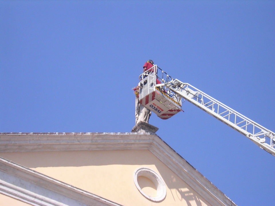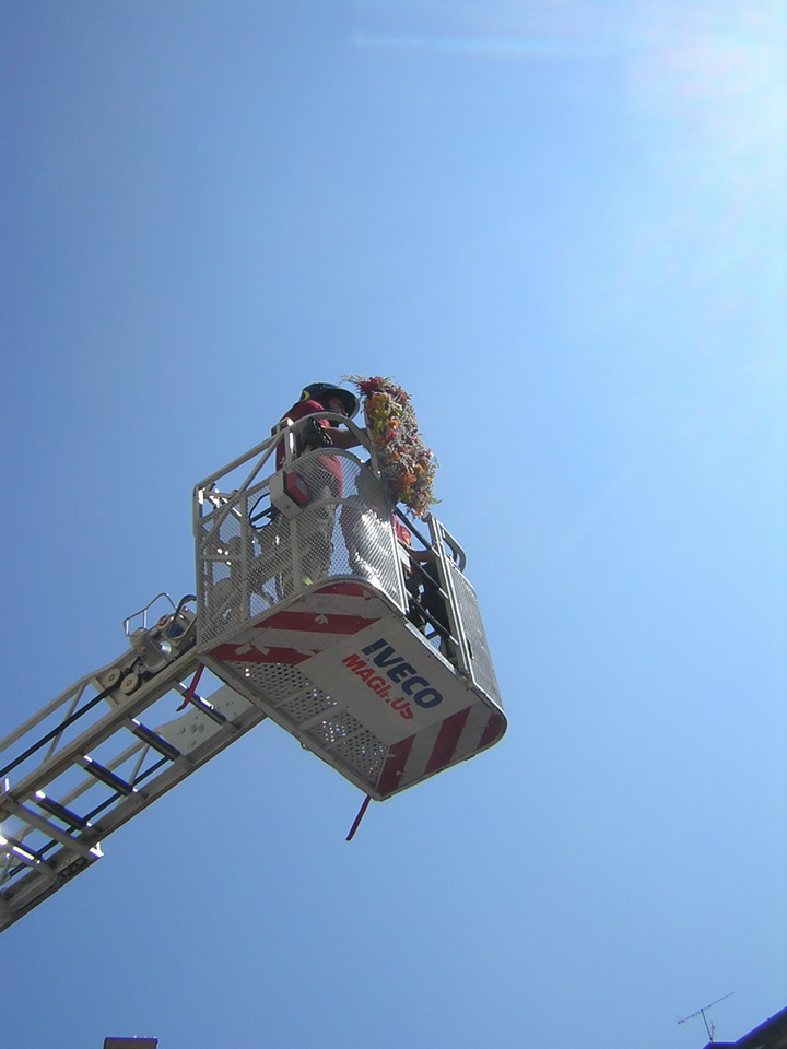 Infine particolarmente emozionante e suggestiva è stata la cerimonia di collocazione di una corona di fiori in omaggio alla Madonna posta sul timpano centrale del Duomo di San Nicolò come richiesta di protezione per quanti operano nei soccorsi verso chi ha bisogno.