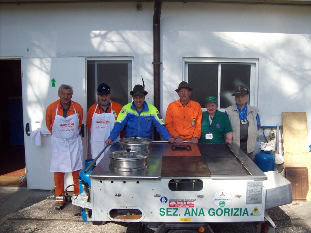 L’attività in oggetto era inerente agli stage per studenti con durata di una settimana dove si vengono illustrati vari scenari  di protezione civile, gli Alpini della sezione di Gorizia della Associazione di protezione civile A.N.A. sono stati chiamati per il vettovagliamento e la preparazione di 140 pasti per gli studenti ed i volontari comunali della protezione civile, il pranzo si è svolto a Sagrado. Nell’occasione è stata usata la cucina campale sezionale e tutto il materiale necessario per la buona riuscita della manifestazione, ma soprattutto per amalgamare lo spirito alpino sempre pronto ad aiutare sia in momenti come questi conviviali che in quelli di emergenza.