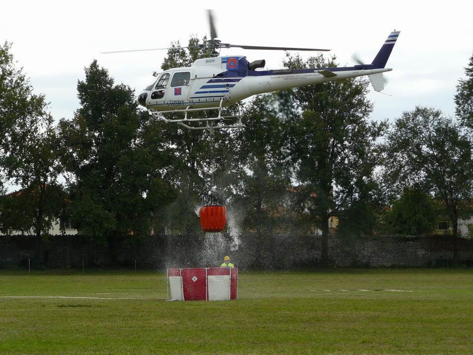 I gruppi AIB di Aviano e Polcenigo hanno dimostrato, con grande professionalità, le tecniche di spegnimento di un incendio boschivo con l'ausilio dell'elicottero della protezione civile regionale che ha svolto le operazioni di trasporto di volontari e di attrezzature e quelle di lancio di acqua sull'incendio.