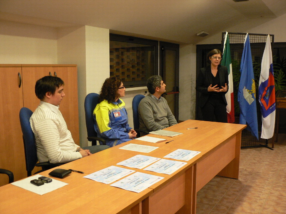 Dopo i ringraziamenti degli organizzatori, il Vicesindaco di Mossa Elisabetta Feresin, il Sindaco di Moraro Alberto Pelos, il Sindaco di San Lorenzo Isontino Ezio Clocchiatti e l'Assessore alla Protezione civile di Gorizia Francesco Del Sordi hanno consegnato gli attestati di partecipazione a 31 volontari che hanno frequentato con successo il corso.