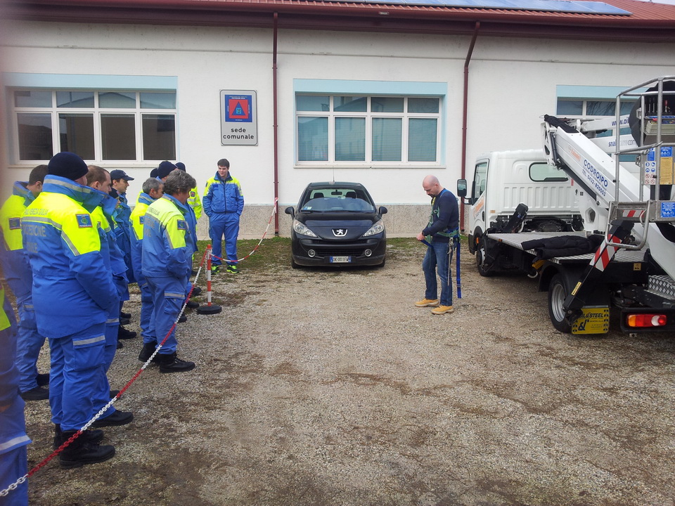Il docente, della ditta "EUROFINS" accreditata per rilasciare il "patentino" per l'utilizzo delle piattaforme, ha condotto una coinvolgente parte teorica in aula, sulla sicurezza e autotutela dell'operatore nei lavori in quota; successivamente si è tenuta la parte pratica all'esterno, in cui i volontari hanno potuto utilizzare la piattaforma e applicare le nozioni appena apprese.