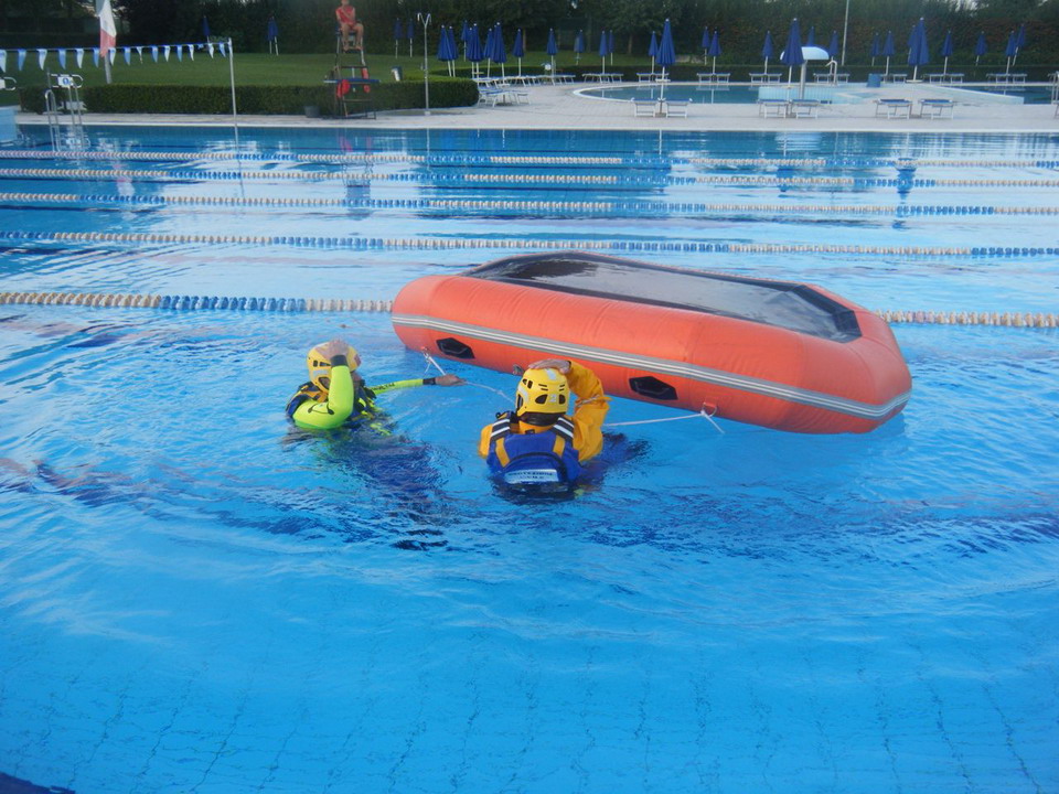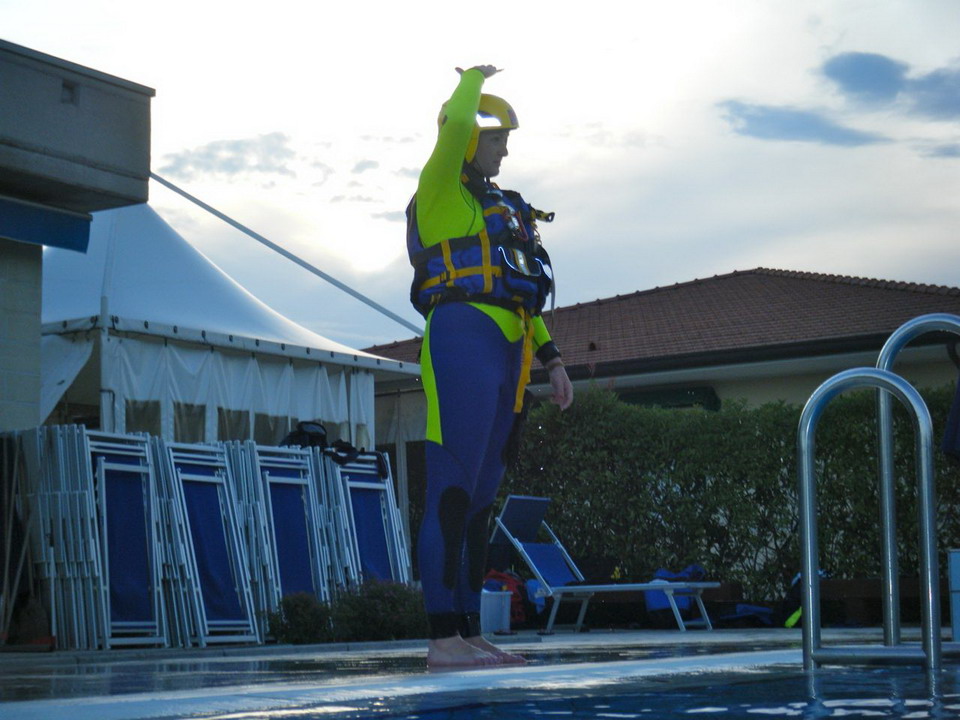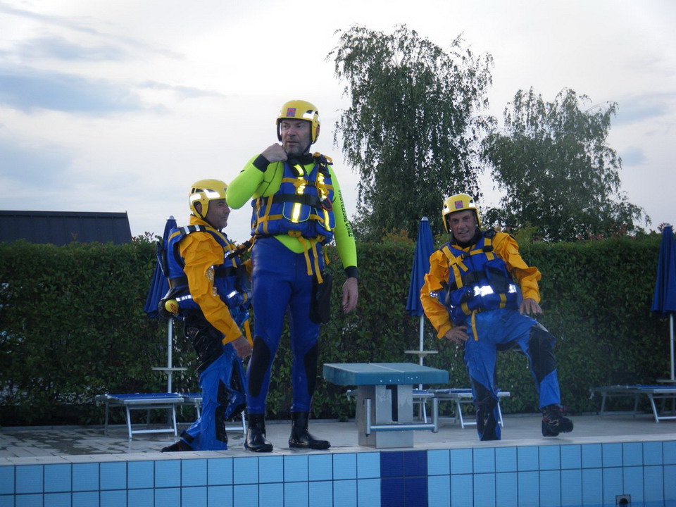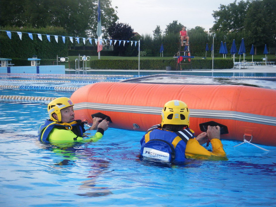 Prosegue l'attività di retraining in piscina per i volontari del Nucleo Fluviale del Gruppo comunale di Protezione civile di Azzano Decimo, venerdì 5 agosto 2011 si è svolta un altra lezione pratica presso la piscina Gymnasium Water Age di Cordenons (PN). Durante l'attività in acqua, i volontari hanno potuto provare alcune movimentazioni in acqua con l'uso dei DPI (mute, idrocostumi, aiuti al galleggiamento e caschi) in dotazione.