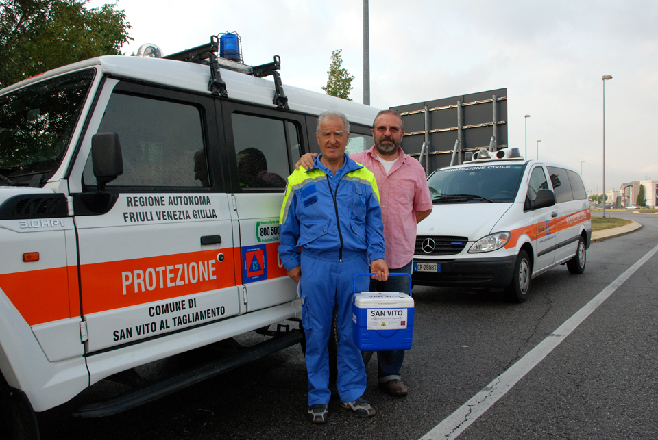 Lunedì 12 settembre 2011 il Gruppo comunale di Protezione civile di San Vito al Tagliamento ha prelevato il contenitore di campioni di sangue cordonale dall'Ospedale Santa Maria dei Battuti, per consegnarlo nel luogo prefissato a Portogruaro ad un funzionario della Protezione civile proveniente da Palmanova, il quale, dopo le formalità, con proprio automezzo ha trasportato l’importante contenuto alla Banca del Sangue di Cordone di Padova. Prima di rientrare nella propria sede, i volontari di San Vito al Tagliamento hanno consegnato al Centro Nascite del proprio Comune un contenitore termico vuoto ricevuto poco prima a Portogruaro.