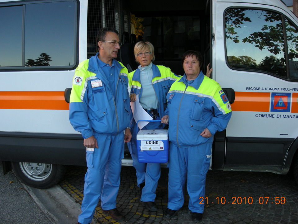 Giovedì 21 ottobre 2010 il Gruppo Comunale di Protezione Civile di Manzano è stato attivato dalla Sala Operativa Regionale per il trasporto di sangue cordonale. I volontari hanno ritirato il campione donato presso l'Ospedale Civile di Udine e l'hanno consegnato al personale del Centro Operativo della Protezione Civile di Palmanova per l'inoltro alla Banca del Sangue di Cordone di Padova. Questa è stata la quinta volta di attivazione dei volontari del Gruppo comunale di Manzano per l'effettuazione del trasporto di sangue cordonale.