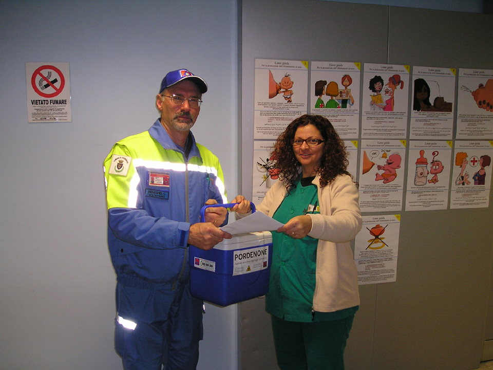 Attività trasporto sangue cordonale da parte del Gruppo comunale di Protezione civile di Cordenons (PN)