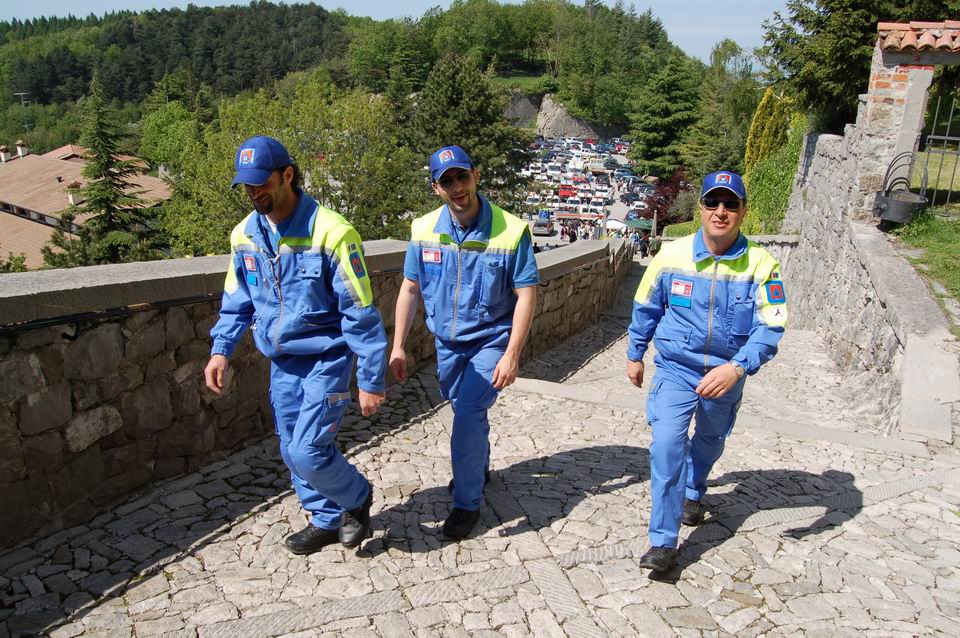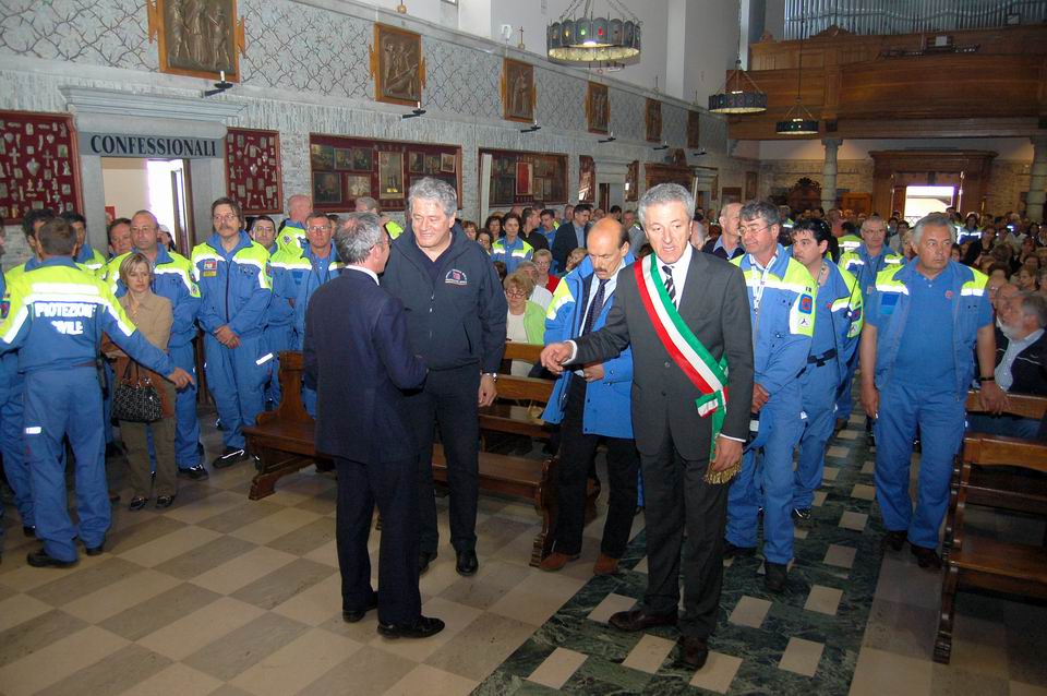 Un folto numero di volontari, dopo aver schierato i mezzi di Protezione civile nel piazzale antistante il Santuario, ha partecipato alla celebrazione della S.S. Messa alla presenza del direttore centrale della Protezione civile regionale, Guglielmo Berlasso e dei Sindaci di Cividale del Friuli e di Prepotto.