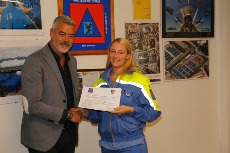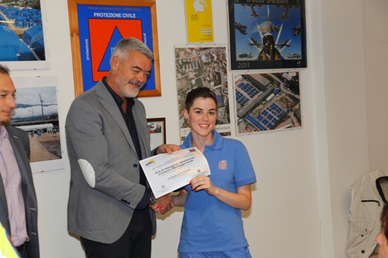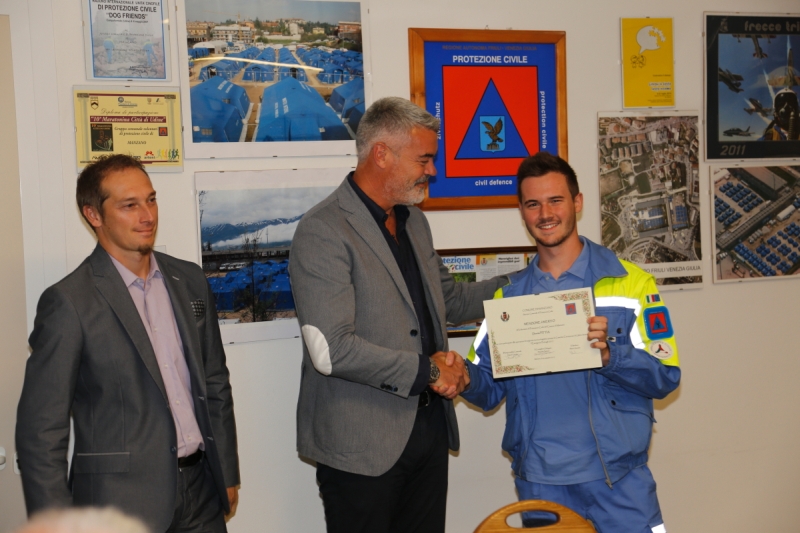 Gli attestati di Terza Classe, Prima Fascia, sono stati rilasciati ai volontari Liliana Sambo, Daniele Cantarutti, Matteo Minchiotti, Pietro Verrecchia, al vice capo squadra Emanuele Zof e al capo squadra Tiziano Vecellio. L’attestato di Terza Classe, Seconda Fascia, al responsabile comunale David Trentin.