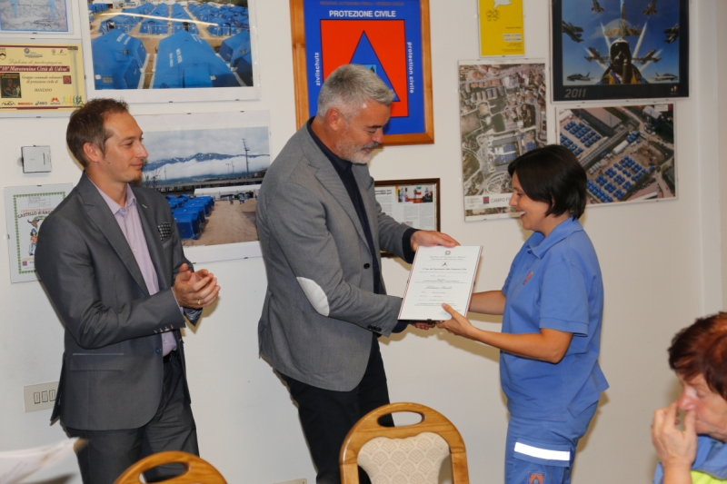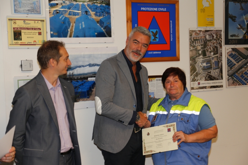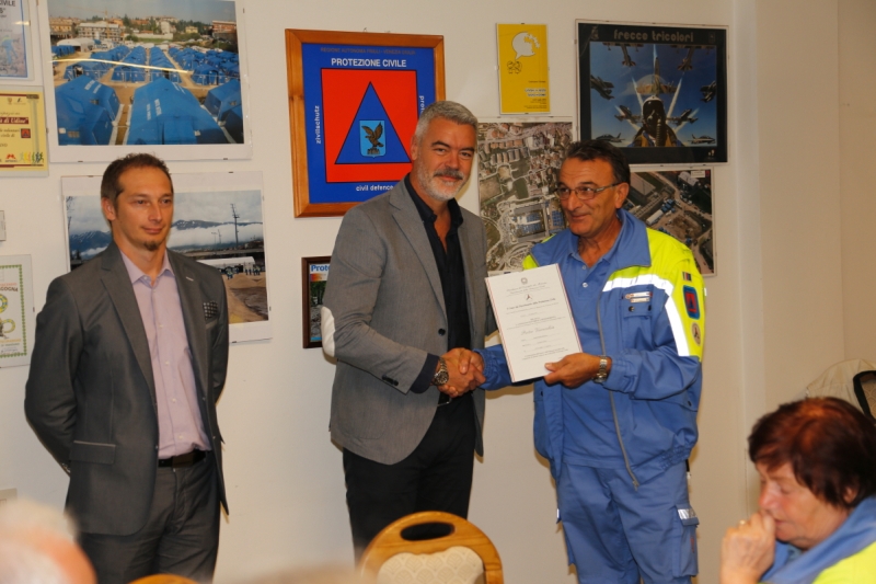 Nel contesto della sede Comunale della Protezione Civile Comunale martedì scorso si è svolta la cerimonia di consegna, ai volontari interessati, degli attestati di Pubblica Benemerenza della Presidenza del Consiglio dei Ministri, rilasciati dal Capo Dipartimento della Protezione civile, a testimonianza dell'opera e dell'impegno prestati negli ultimi anni in occasione di diversi eventi per i quali era stato deliberato lo stato di emergenza.
