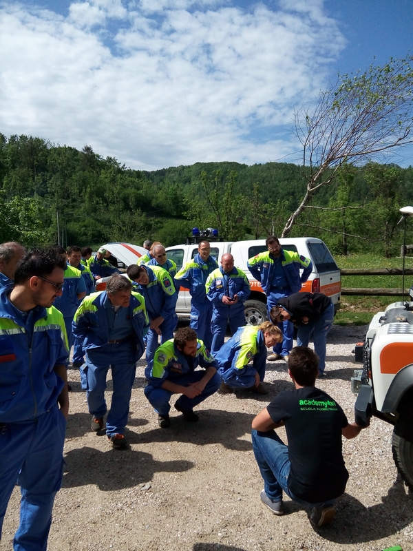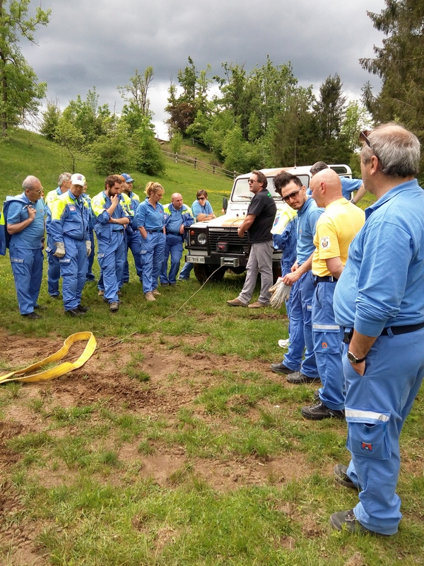 Il pomeriggio invece si sono svolte le prove pratiche in una località nelle vicinanze, in uno specifico percorso dove i volontari hanno potuto conoscere al meglio i mezzi in loro possesso ed eseguendo manovre di sicurezza sull’utilizzo dei mezzi in situazioni particolari , e non da meno prova pratica del verricello.