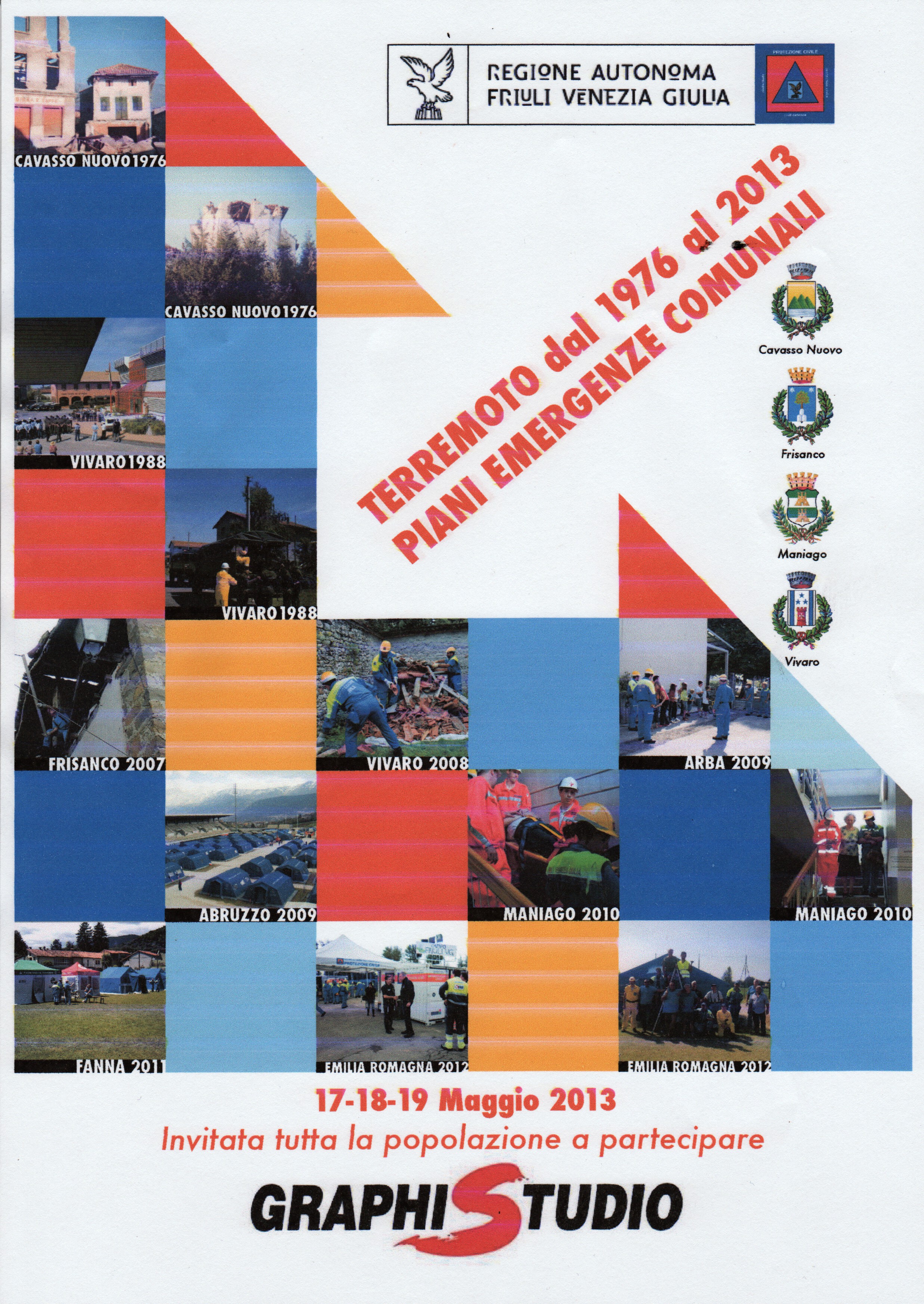 Si svolgerà nei giorni 17, 18 e 19 maggio 2013 nei Comuni di Vivaro, Cavasso Nuovo, Maniago e Frisanco un'esercitazione di protezione civile denominata “Aree Emergenza 2013”. L'evento è organizzato dai Gruppi comunali appartenenti al Distretto di Protezione civile Meduna-Cellina e intende simulare un intervento a seguito di un evento tellurico di media intensità che colpisce i Comuni di Cavasso Nuovo, Frisanco, Maniago e Vivaro, con epicentro delle prime scosse nel territorio Comunale di Vivaro e della scossa maggiore nel Comune di Cavasso Nuovo.