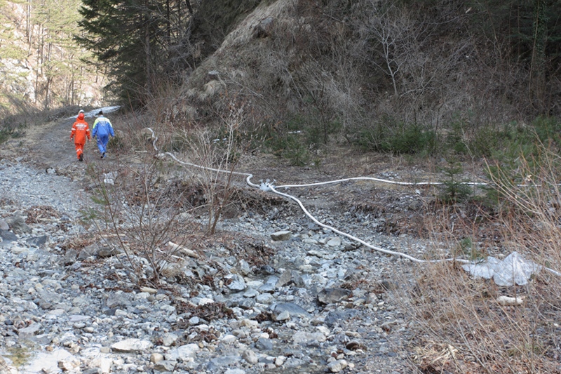 - Appena liberato il passaggio la seconda squadra è intervenuta ad installare la motopompa Ziegler 16/8 , in località “Briglia”, e il primo tratto della linea di alimentazione.