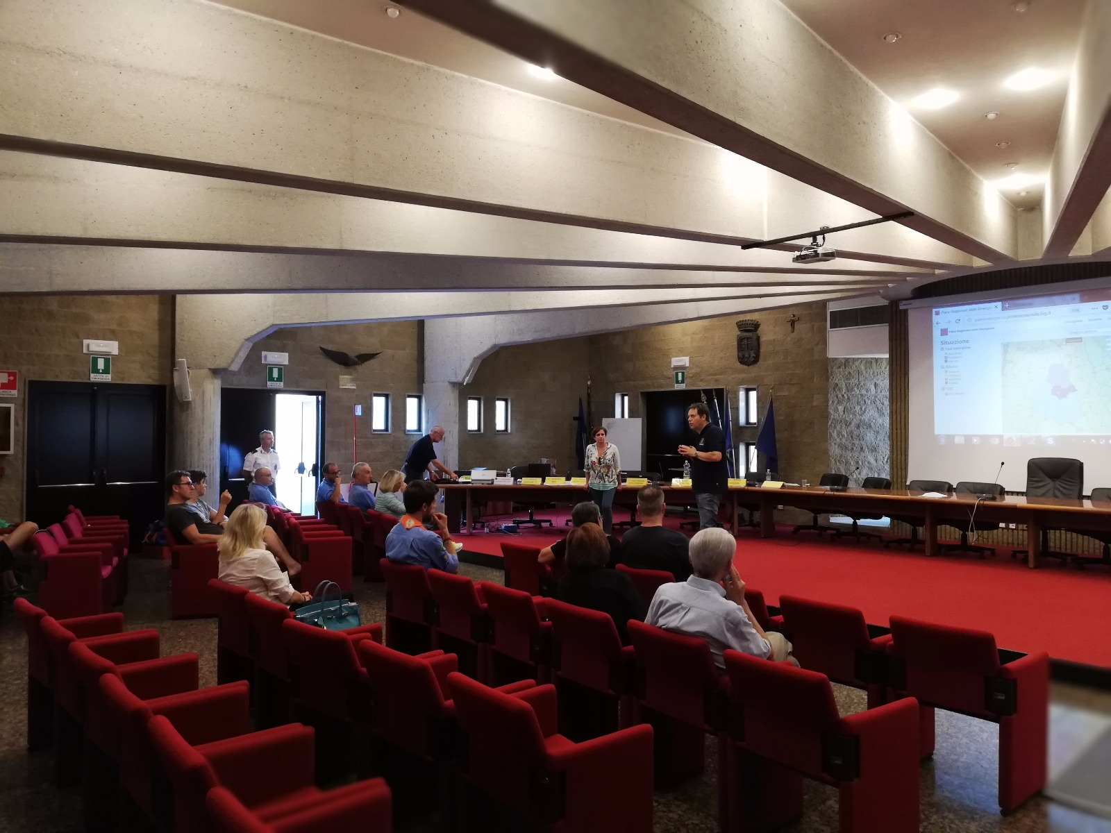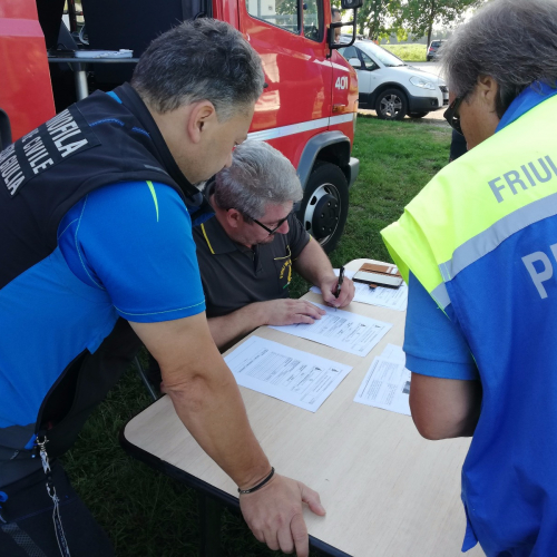 E' stato organizzato un interessante incontro presso l'ex scuola dove il Funzionario della protezione civile che supportava il Comune in tutte le fasi esercitative ed il Tecnico del Comune, che hanno illustrato il Piano di Emergenza Comunale e spiegatop le fasi operative nel corso dell'esecitazione, con particolare riguardo al Comune di Campoformido.