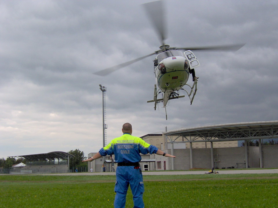 Nella mattina di sabato 13 settembre 2008, i volontari del Gruppo Comune di Protezione civile di Sedegliano (insieme ai colleghi dei comuni di Campoformido, Flaibano, Porcia, Pavia di Udine, Resia, Ronchis e S. Canzian d’Isonzo) hanno partecipato alla quinta sessione del corso di elicooperazione che si è tenuto a Montereale Valcellina presso la “sala Rovereto” di palazzo Toffoli. Tutti i volontari hanno seguito con interesse la lezione teorica tenuta da un pilota e da un tecnico di volo dell’Elifiulia, nella quale sono stati forniti tutti i dati essenziali alla conoscenza dell’elicottero Ecureuil AS 350 B3 in servizio con la Protezione Civile Regionale; successivamente sono state spiegate le tecniche di volo e di approccio alla macchina ed in particolar modo le nozioni di sicurezza da osservare durante le operazioni. Al termine tutto il gruppo si è trasferito presso gli impianti sportivi dove, nonostante le condizioni del tempo non ideali, sono state eseguite delle prove pratiche di volo, di imbarco e sbarco in hovering.