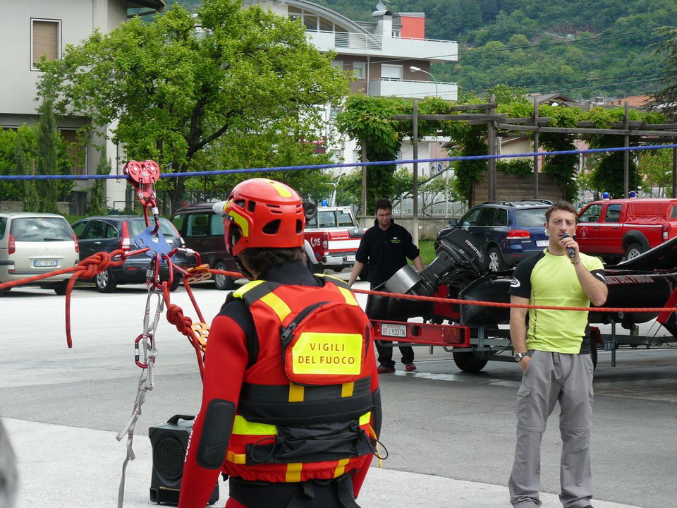 Gli argomenti  trattati  nella parte teorica sono stati: il monitoraggio dei corsi d'acqua in caso di piena e tecniche di intervento, le attrezzature e le procedure per il soccorso in fiume e l'ipotermia. Successivamente alla parte teorica, nella seconda parte della mattinata i vigili del fuoco volontari di Lavis, Cavalese e Mezzolombardo hanno effettuato a secco una dimostrazione delle tecniche di recupero di una persona in acqua corrente.  Nel pomeriggio, dopo il pranzo presso la caserma dei Vigili del Fuoco di Lavis, le simulazioni pratiche sono state svolte nel torrente Avisio che attraversa il paese di Lavis.  Le simulazioni, tutte commentate da uno speaker, sono state svolte dai Vigili del Fuoco volontari di Salorno, Lavis, Mezzolombardo, Cavalese e Molina di Fiemme e dai volontari della protezione civile di Valstagna e Schio, tutti i partecipanti alle simulazioni avevano frequentato i corsi Rescue3 che rilasciano l'unico brevetto riconosciuto a livello internazionale per il soccorso fluviale.