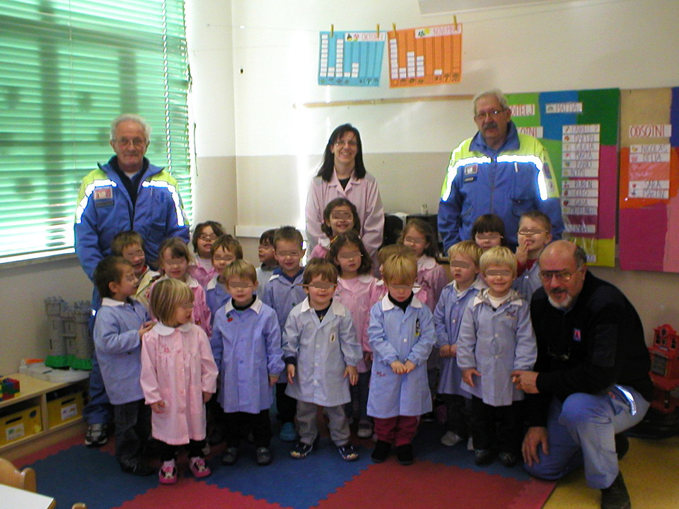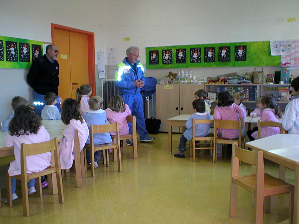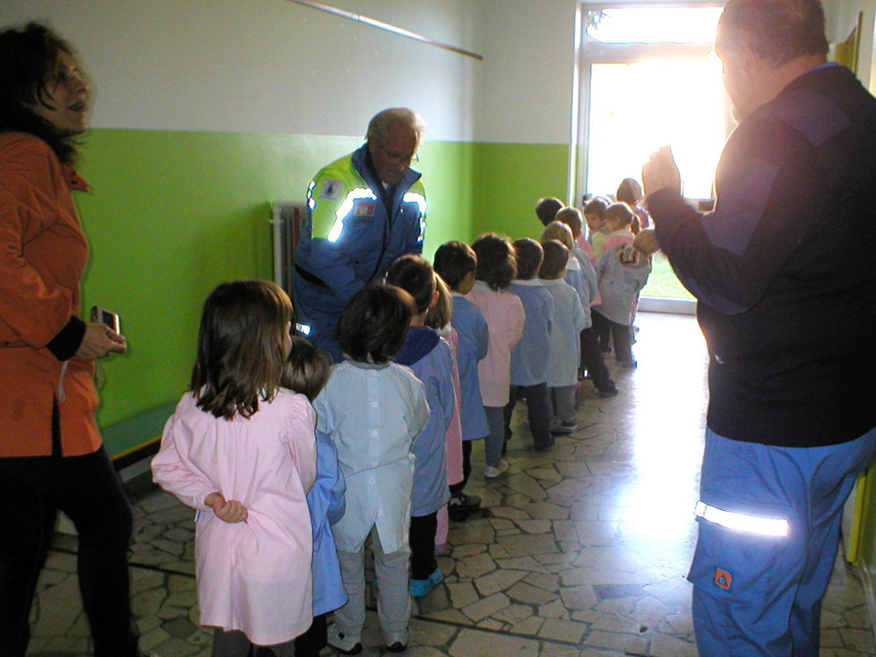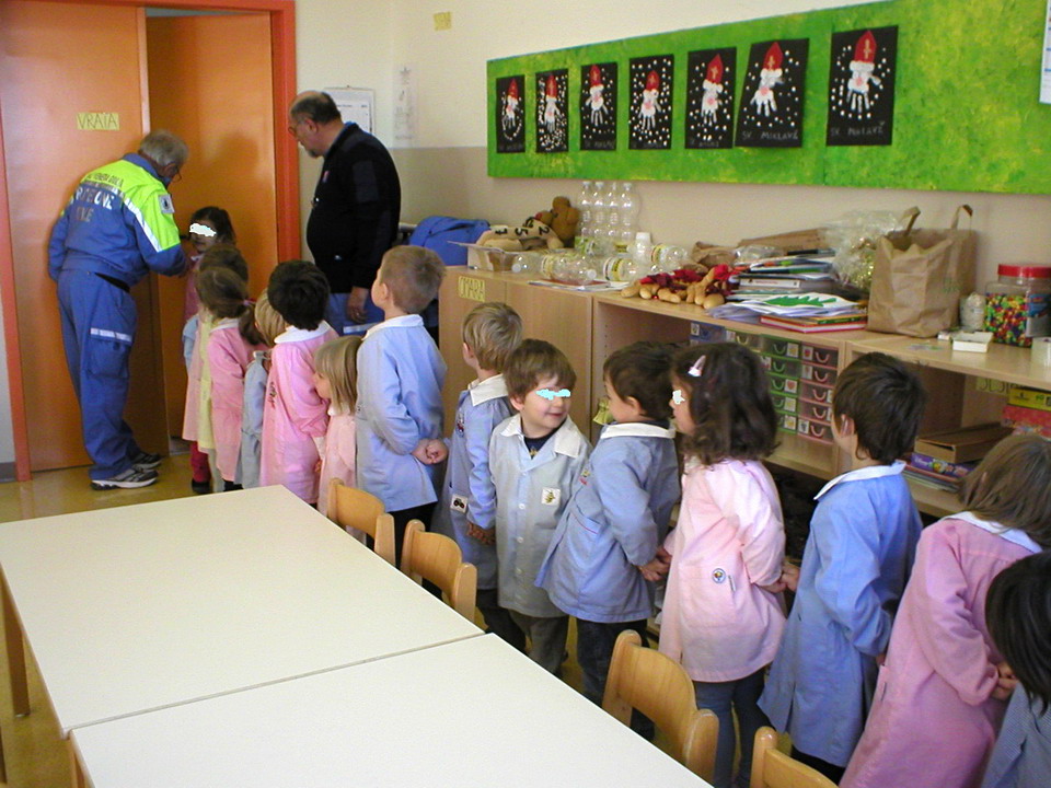 Il Gruppo comunale di Protezione civile di Cormons (GO) impegnato in attività di divulgazione e prove di evacuazione presso le locali scuole materne e primarie