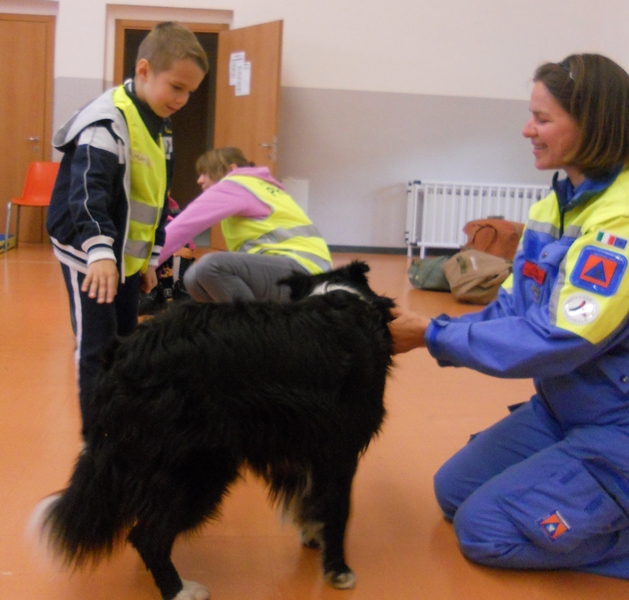 Una volontaria cinofila ha illustrato la sua attività integrando poi l'intervento con una interessante lezione di approccio verso cani sia conosciuti che sconosciuti, simulando situazioni pericolose ed