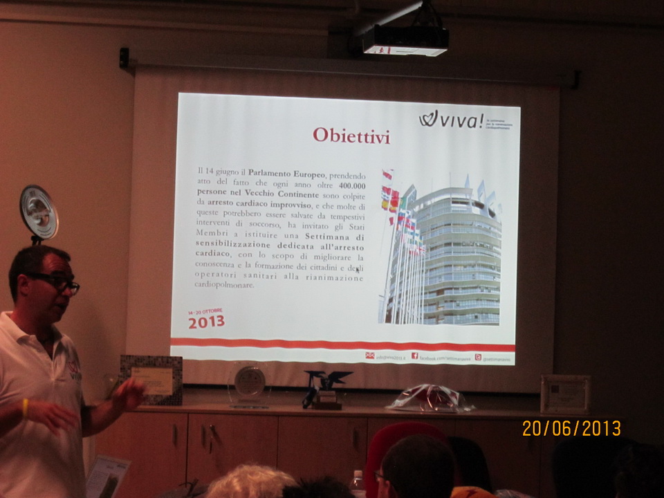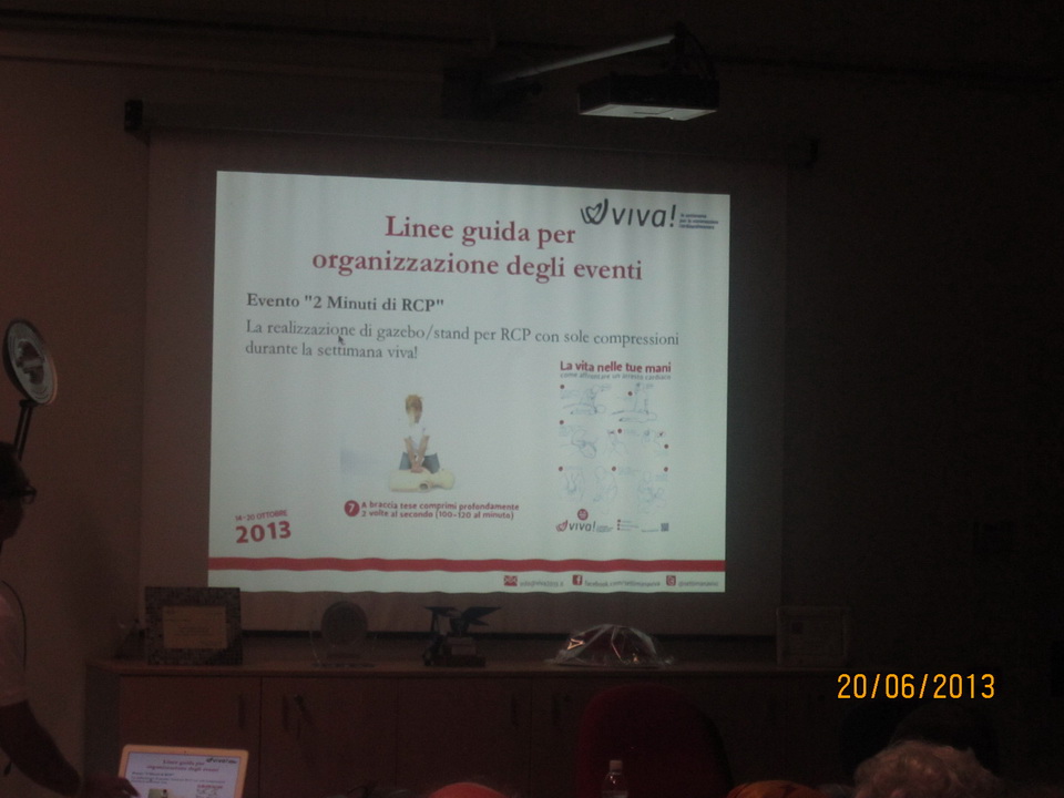 Nella serata di giovedì 20 giugno 2013 nella sede del Gruppo comunale di Protezione Civile di Pordenone si è tenuto un incontro con il dr. Tommaso Pellis, Anestesia e Rianimazione - Centrale Operativa 118 - Elisoccorso regionale - Ospedale "Santa Maria degli Angeli" Pordenone, sulla "Settimana per la Rianimazione Cardiopolmonare".