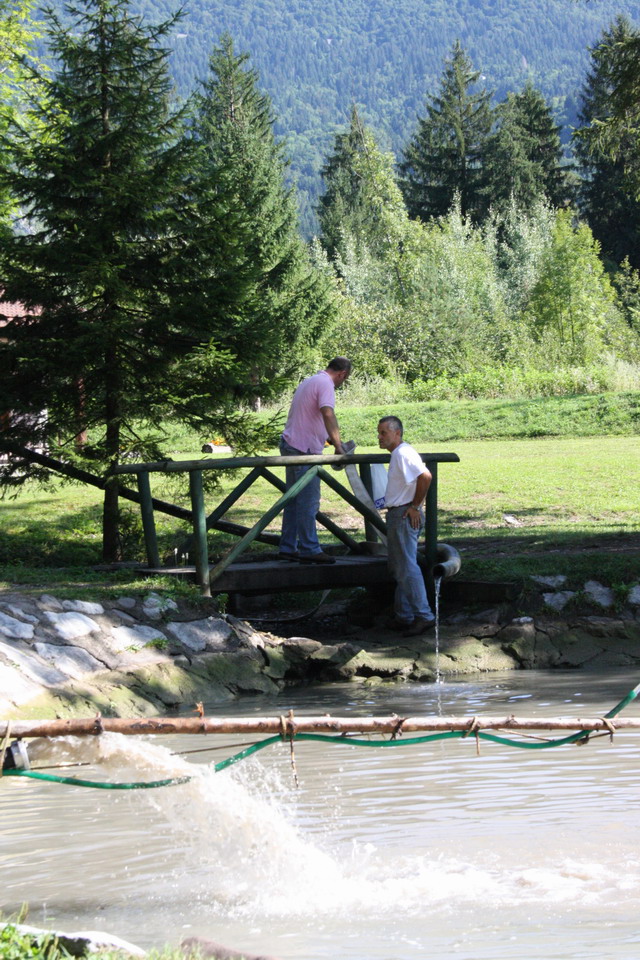 Il giorno successivo, con la collaborazione dell’associazione dei pescatori che gestisce il laghetto, si è deciso di montare una seconda linea (che lavorerà fino a venerdì 14 agosto) per poter far salire ulteriormente il livello dell’acqua. Si è inoltre posizionato un telo sullo sbarramento per impedire eventuali perdite.