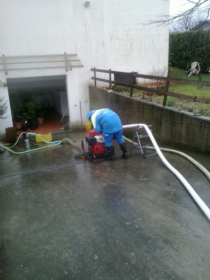 Intervento di protezione civile per svuotamento scantinati allagati dall'innalzamento della falda effettuato dal Gruppo comunale di Protezione Civile di San Giorgio della Richinvelda (PN)