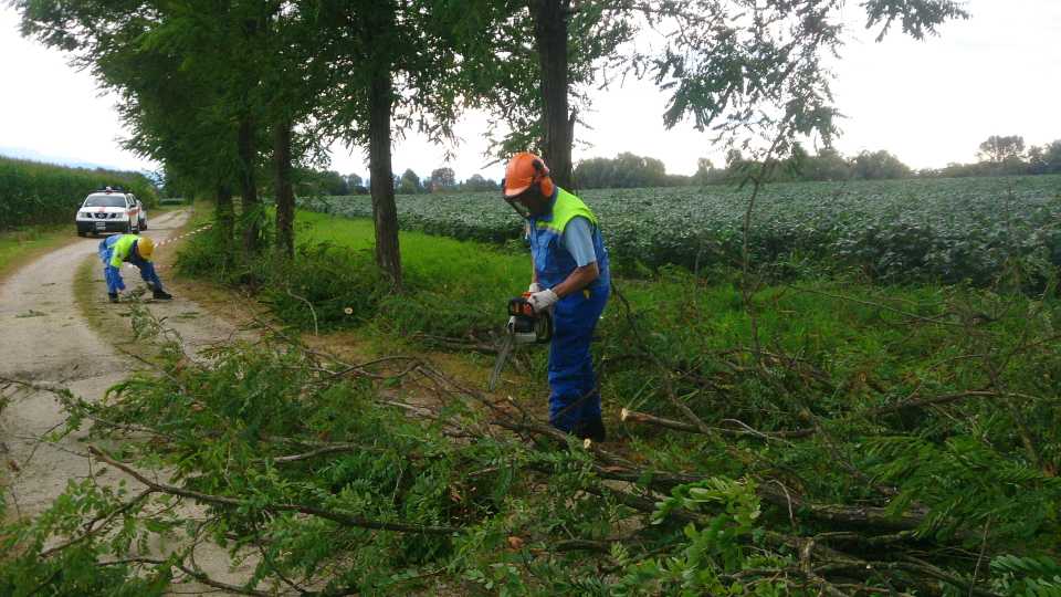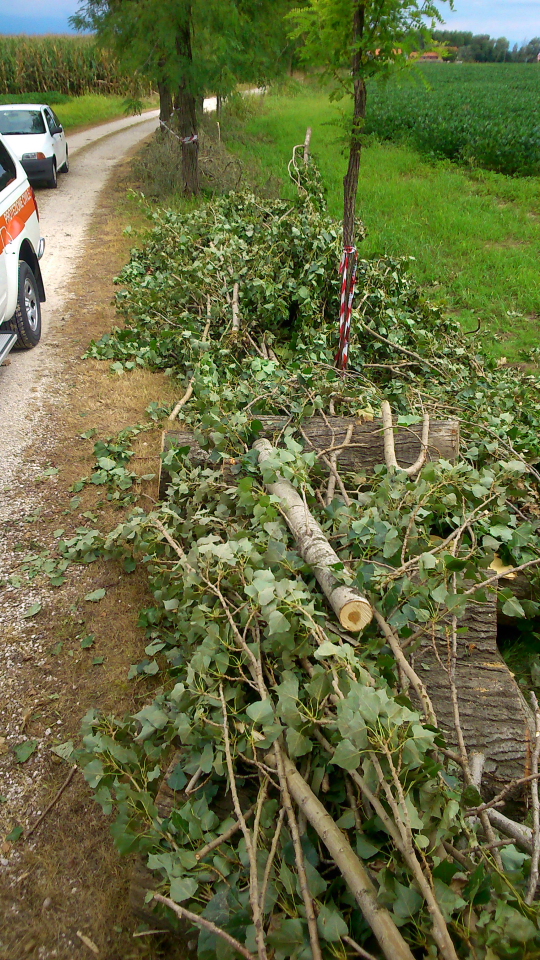 Nella mattinata del 14 agosto l'amministrazione comunale ha fatto pervenire ad una squadra, composta da due volontari ed un mezzo, la segnalazione di alberi caduti nella zona industriale di Pieve, dopo un primo sopraluogo e la messa in sicurezza della zona, si è scelto per l'abbattimento controllato degli alberi con l'ausilio del camion cesta comunale.
