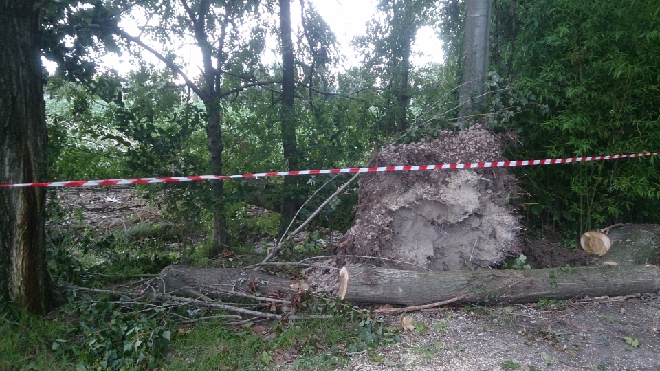 Successivamente la squadra ha individuato una situazione ad elevato rischio, infatti una decina di alberi, a causa delle forti raffiche di vento, sono stati completamente sradicati ed abbattuti all'interno del parco pubblico "percorso vita"; prontamente i volontari hanno provveduto a delimitare l'area, che è stata interdetta all'accesso.