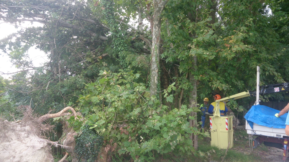Nel pomeriggio due squadre, con estrema professionalità, hanno iniziato l'intervento in seguito sospeso a causa di un violento nubifragio.