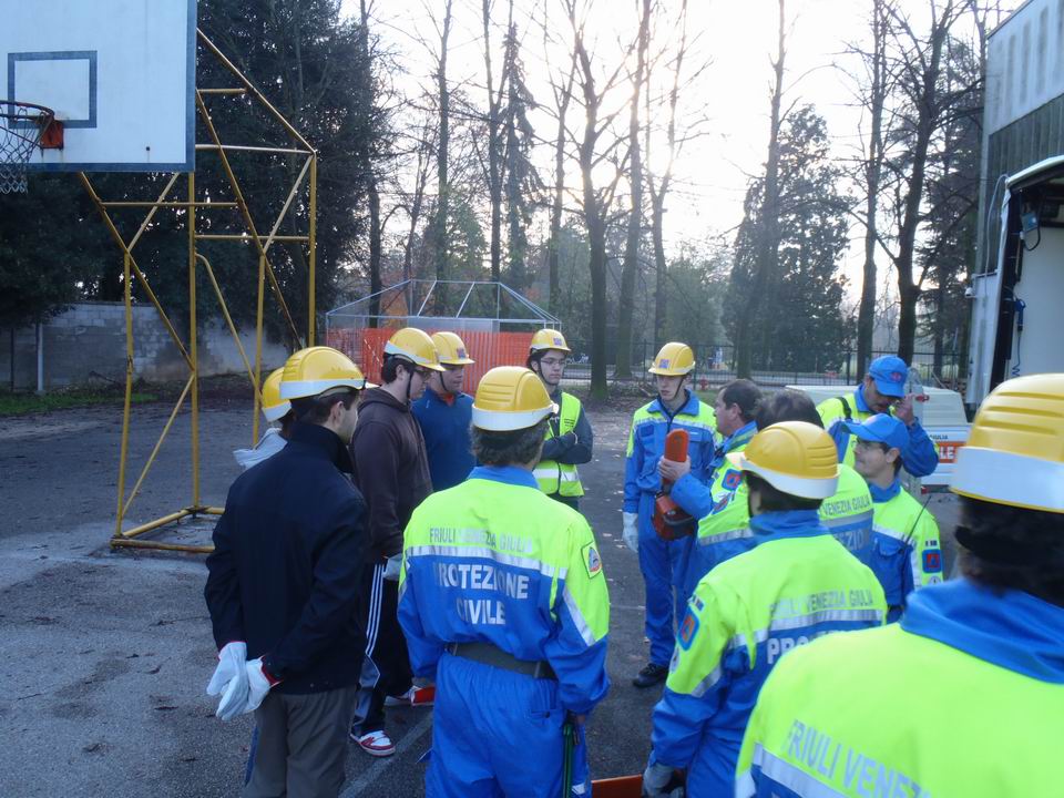 Hanno preso parte all’addestramento: funzionari della Protezione civile Regionale, volontari dei Gruppi comunali di Protezione civile di Cordenons, Chions, Pordenone e San Quirino, la Squadra di Protezione civile dell’Istituto, una decina di volontari di Protezione civile ex studenti del Kennedy, operatori SOGIT con ambulanza e la squadra di Primo Soccorso dell’Istituto (formata da personale addestrato).