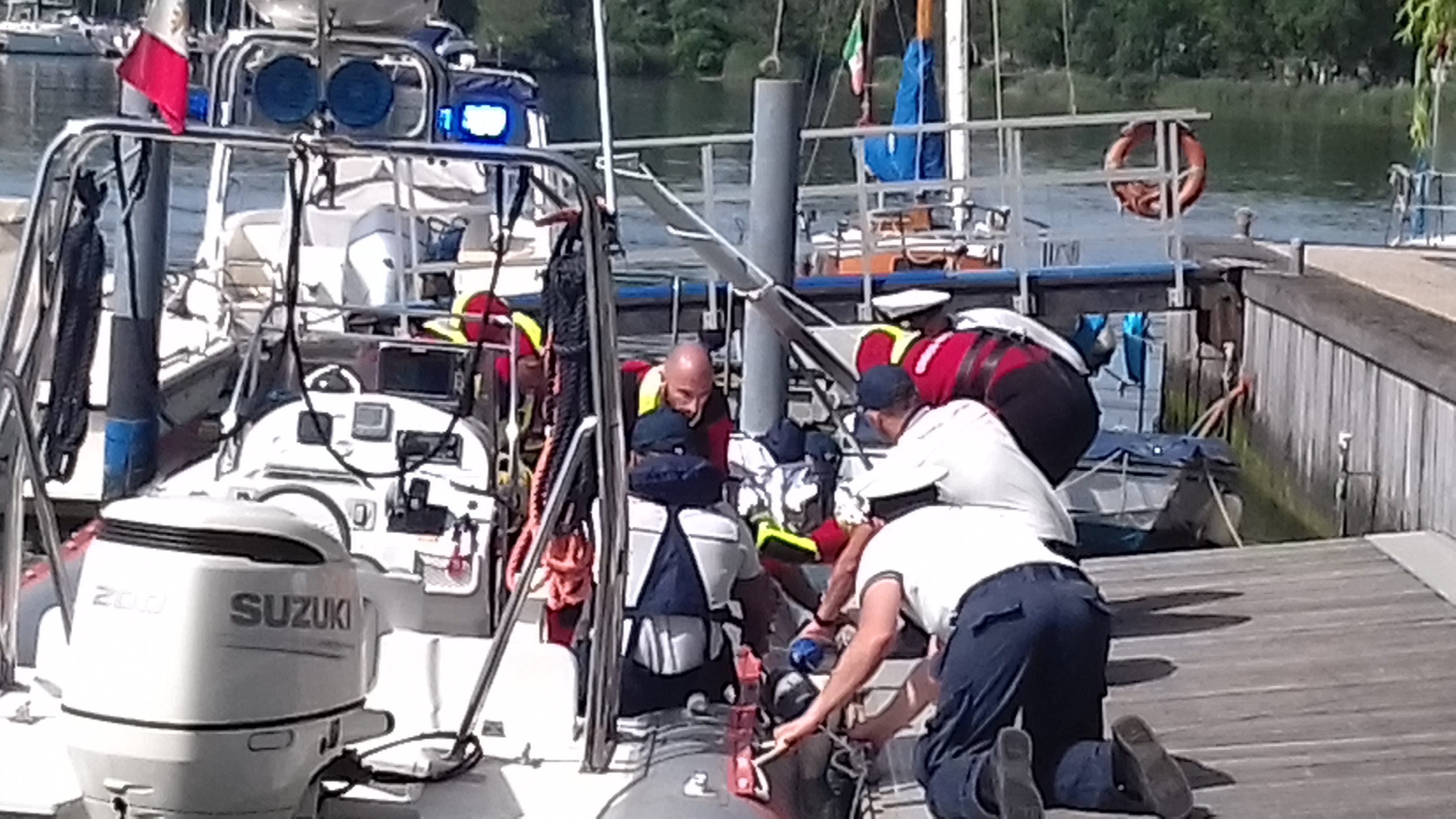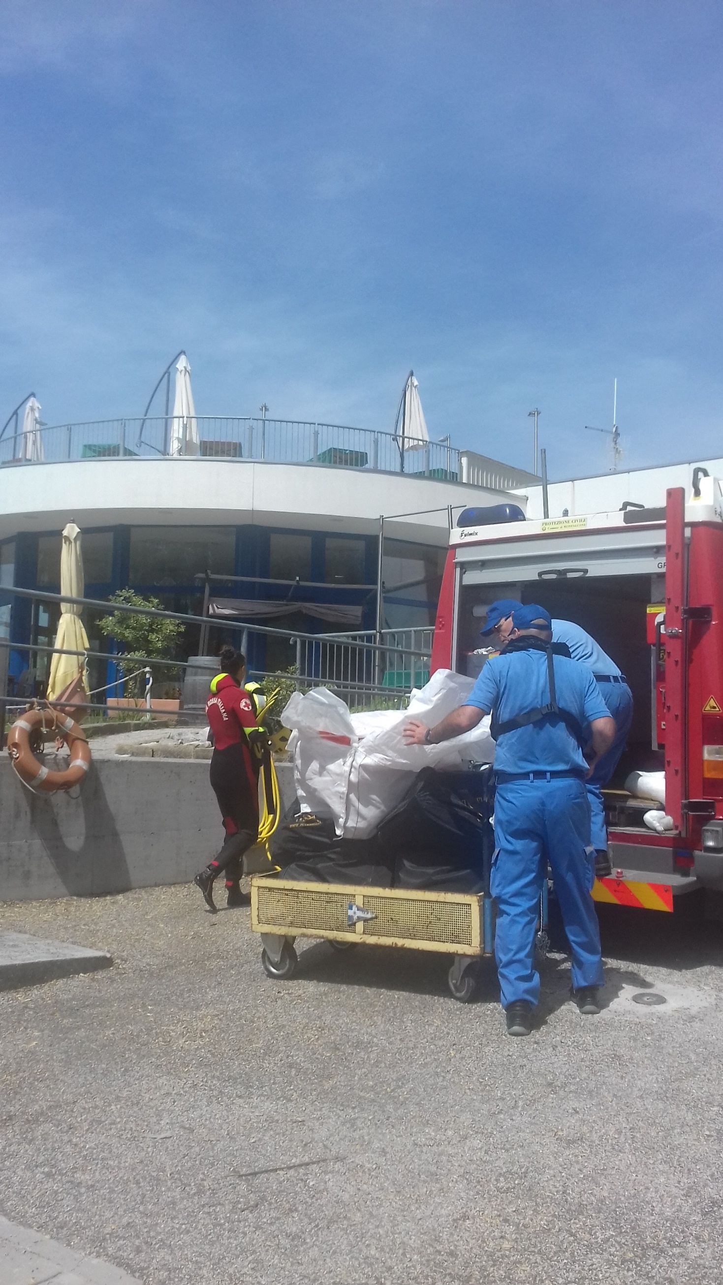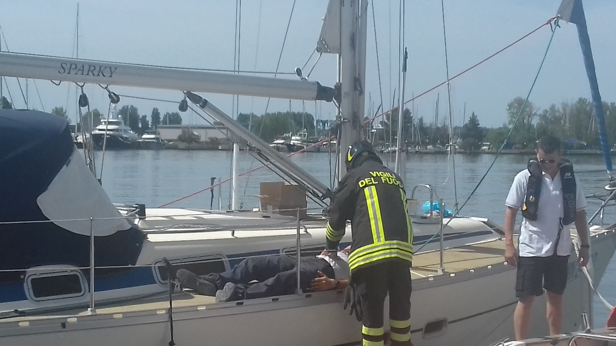Sono state attivate pertanto le procedure di soccorso con le chiamate a CP, Vigili del Fuoco e Soccorso Sanitario. L’intervento dei mezzi nautici dei soggetti preposti nonché di mezzi a terra ha consentito lo spegnimento dell’ incendio dell’imbarcazione, il recupero delle persone infortunate sia quella rimasta sull’imbarcazione che di quella caduta in acqua con l’intervento dl soccorso degli operatori subacquei del 118 e Croce Rossa.