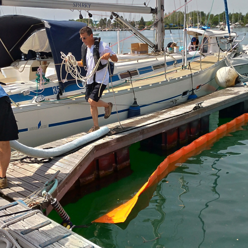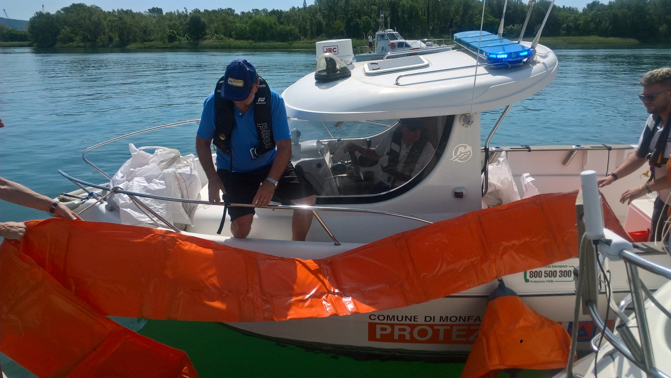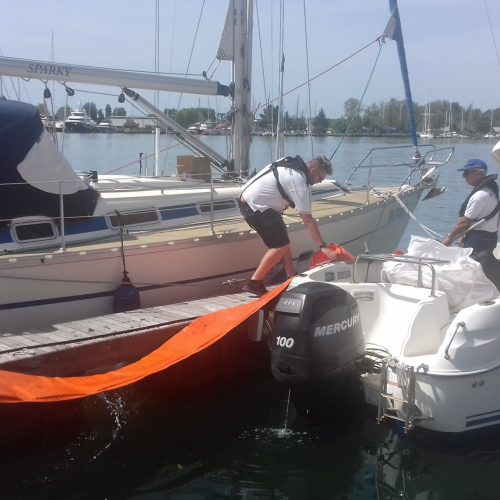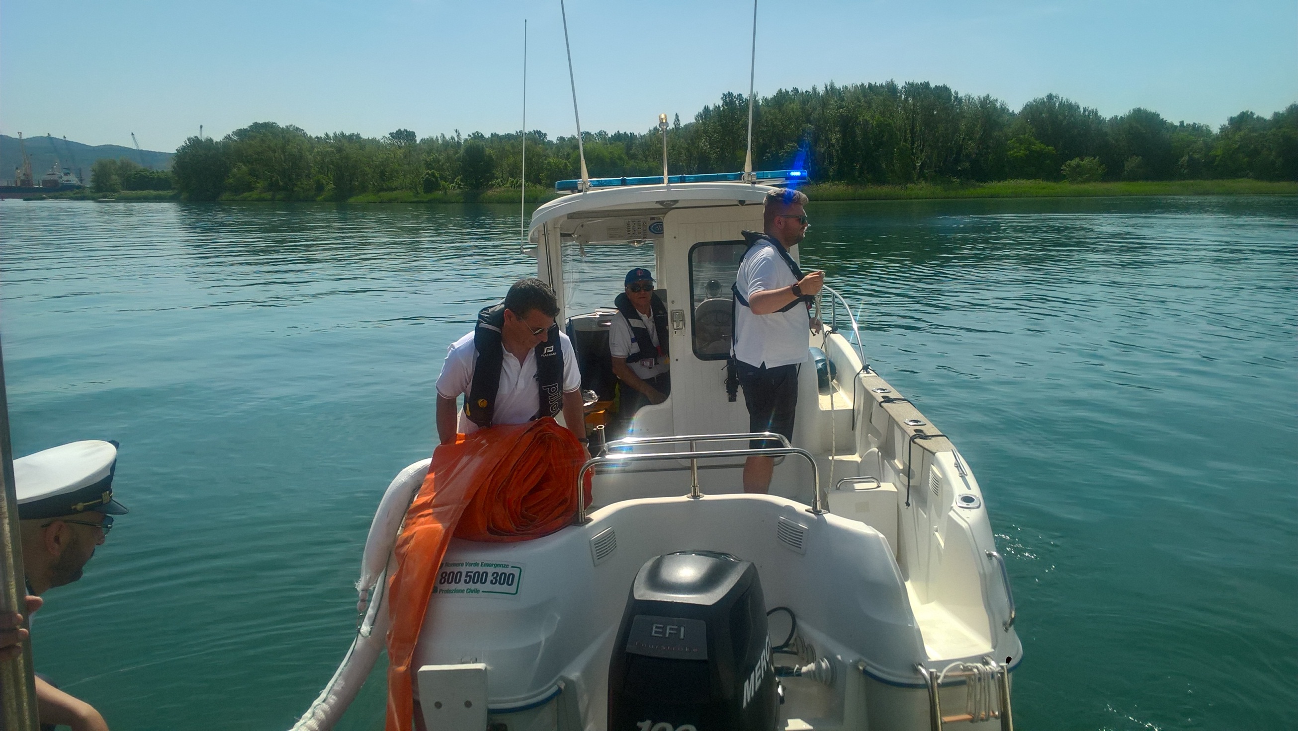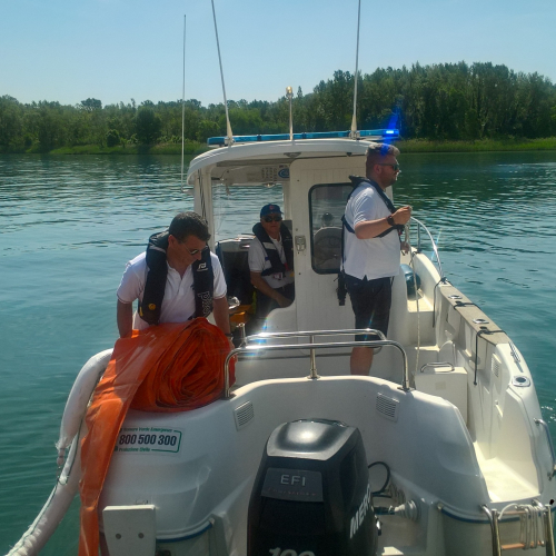 Nel rispetto dei tempi reali di intervento, la Squadra nautica ha raggiunto con il mezzo nautico in dotazione, l’area di intervento per posizionare le barriere e le panne antinquinamento.