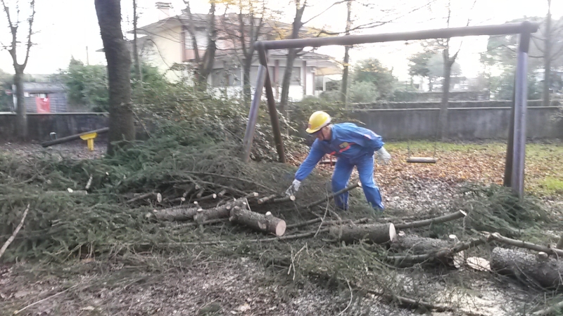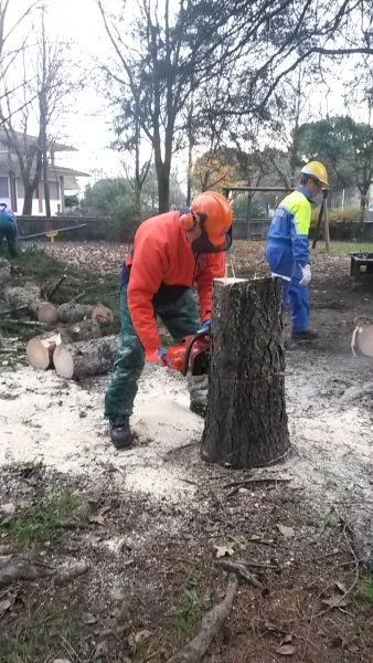Giornata tutta dedicata al "taglio" con l 'uso di motoseghe e attrezzature da taglio manuale quella affrontata dai Volontari del comune di Muzzana del Turgnano, con l'obbiettivo di rendere piu' sicuro il parco dell' ex scuola elementare, ora ospitante diverse associazioni del territorio.
