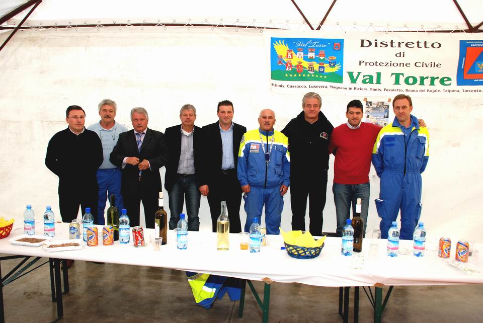 Al raduno sono intervenuti i Sindaci di Attimis, Cassacco,  Lusevera e Nimis, gli assessori di Protezione civile di tutti i Gruppi comunali facenti parte del “Distretto Val Torre”, una delegazione del Corpo Pompieri Volontari di Breginj (Repubblica di Slovenia) e il direttore centrale della Protezione civile regionale, dott. Guglielmo Berlasso.