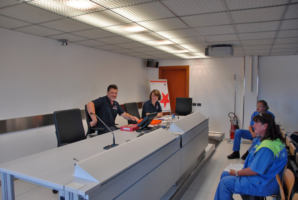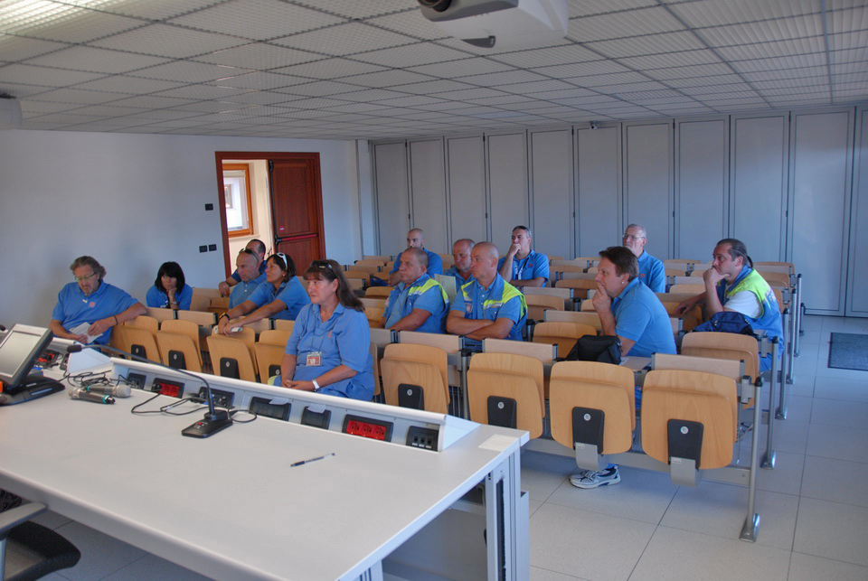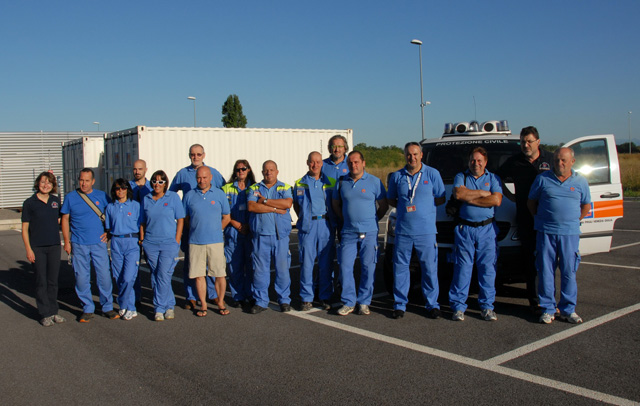 Prima della partenza i tecnici della Protezione civile a capo della delegazione hanno tenuto una breve riunione per spiegare i dettagli organizzativi.