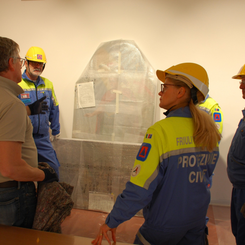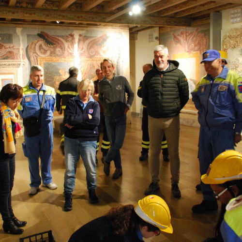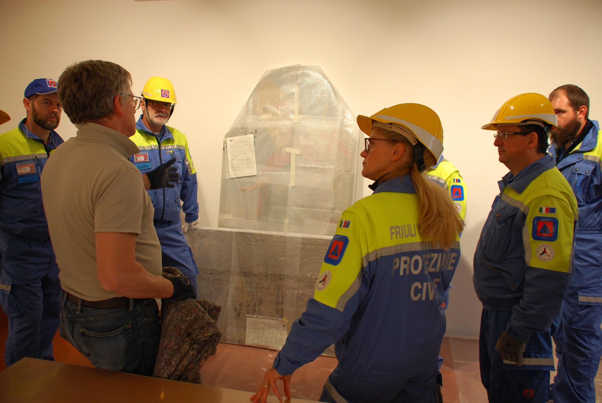 Proprio al museo, sabato 28 ottobre i volontari di protezione civile sono stati raggiunti dal loro assessore regionale Paolo Panontin che dopo aver seguito parte dell’attività, li ha salutati ringraziandoli ancora una volta per la loro disponibilità, anche nel formarsi. “Senza nulla togliere agli altri corsi – le parole dell’assessore Panontin - consentitemi di evidenziare la particolarità di questa percorso formativo che permette un salto di qualità alla partecipazione della protezione civile durante le emergenze, chiamata a dare il suo contributo anche a tutela del patrimonio culturale che come rappresentazione  nel tempo della nostra identità e cultura merita uguale attenzione e rispetto di qualsiasi altra categoria tutelata dal volontariato di protezione civile”.