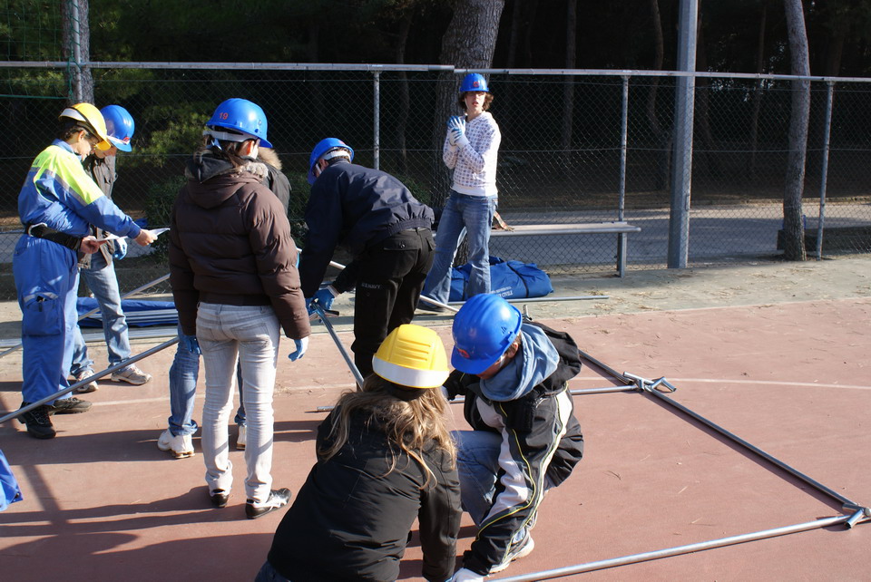 Domenica 7 marzo i ragazzi hanno seguito la prima lezione teorica sull’allestimento di una tendopoli, con interventi dei funzionari della Protezione civile regionale; gli studenti, divisi in gruppi e seguiti attentamente dai volontari, hanno poi svolto la parte pratica consistente nell’attività di montaggio delle tende.