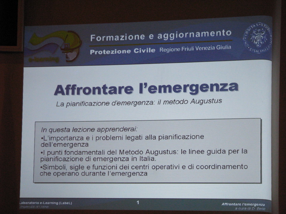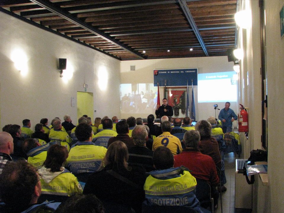 Giovedì 12 marzo 2009 si è svolto a Muzzana del Turgnano il quarto incontro del progetto che vede coinvolti sei Comuni della Bassa Friulana. Hanno preso parte, come relatori, due funzionari della sede regionale della Protezione Civile. Con loro i volontari dei gruppi comunali di Protezione Civile e i cittadini hanno dibattuto riguardo gli aspetti tecnici enunciati dal Metodo Augustus quale linea guida per la “pianificazione di emergenza” in Italia e poi hanno analizzato gli aspetti teorici e alcuni principi della “Comunicazione in Emergenza”.