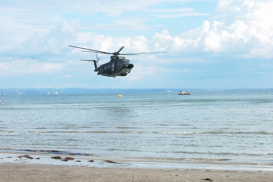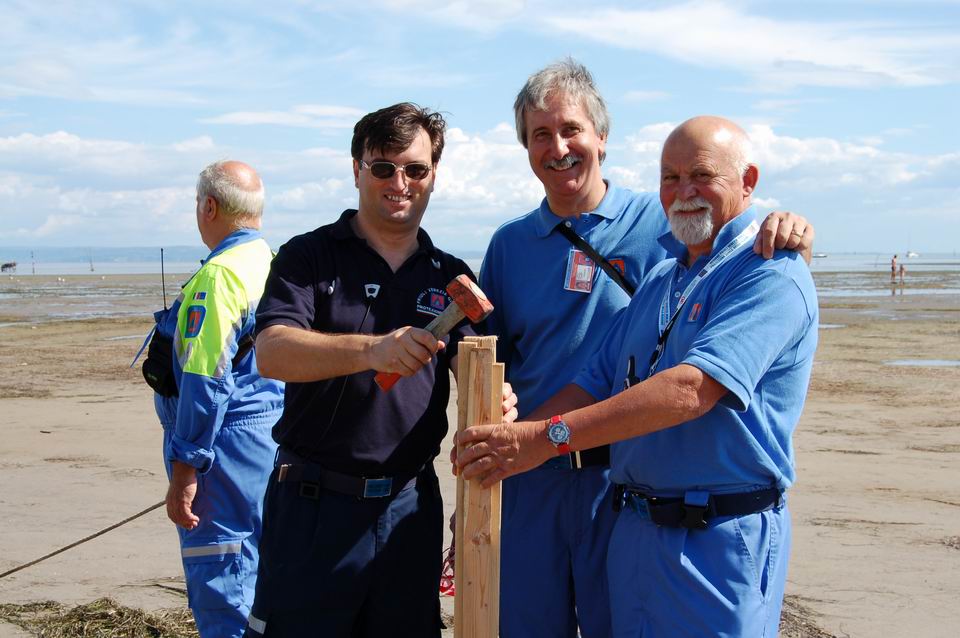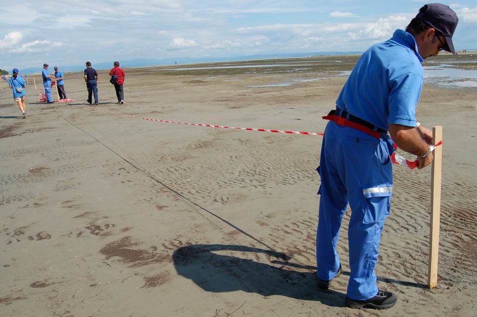 Posizionati uno ogni 50 metri lungo il litorale, i volontari di Protezione civile hanno dato supporto logistico alle Forze dell'ordine, mantenendo sgombra da bagnanti e natanti l'area di sorvolo. A questo scopo, presenti in mare anche 4 imbarcazioni della Protezione civile regionale.