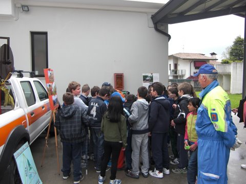 Giovedì 19 aprile 2012 gli alunni sono stati accolti dai volontari del gruppo nella sede comunale di Protezione Civile di Maniago dove, a rotazione, hanno potuto visionare le attrezzature in dotazione alla associazioni presenti, inoltre i volontari hanno spiegato loro le modalità di intervento, infine nella sala riunioni è stato proiettato un filmato dal quale hanno potuto apprendere i comportamenti da tenersi all'interno di un edificio in caso di terremoto, d'incendio e di fuga di una nube tossica. Alla fine dell'attività a tutti gli alunni è stato consegnato un opuscolo informativo "Niente Paura" fornito dalla Protezione Civile della Regione.