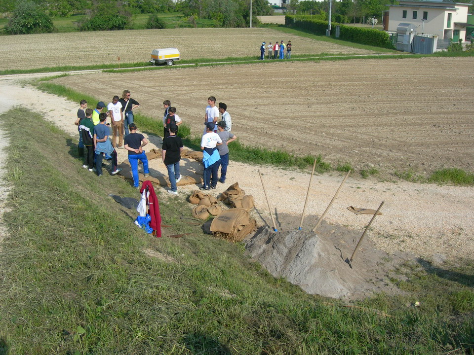 Alle ore 8:30 di giovedì 8 maggio, i ragazzi si sono ritrovati in località "San Giovanni" in comune di Prata, nei pressi dell'argine dove, dopo essere stati suddivisi in squadre ciascuna assegnata a degli istruttori, hanno avuto modo di mettere in pratica quanto visto e imparato durante le lezioni teoriche ed in particolare:
