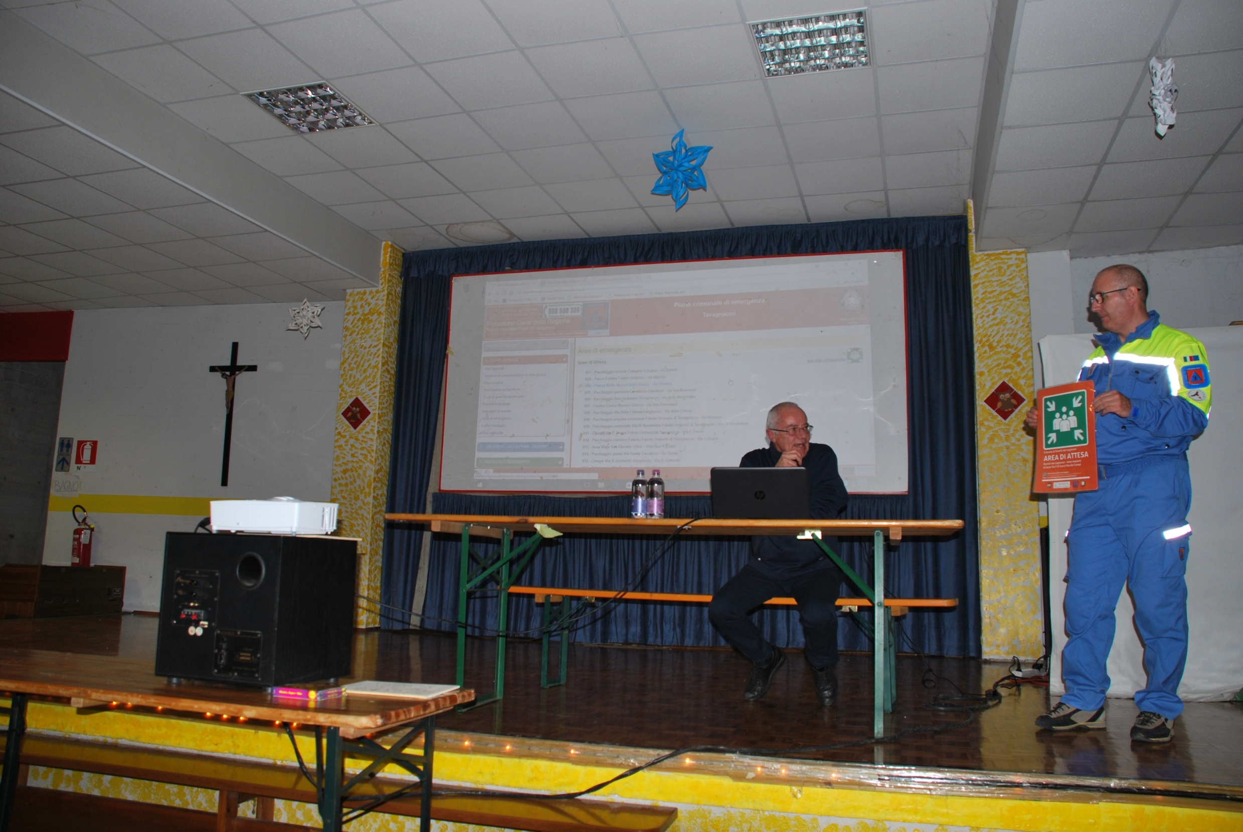 Un funzionario della Protezione Civile regionale ha illustrato poi i contenuti del Piano stesso, facendo partecipi i convenuti sugli aspetti che interessano la popolazione, soffermandosi in modo particolare sulle Aree di Attesa, punto di partenza fondamentale per una corretta ed efficiente gestione dell’ emergenza.